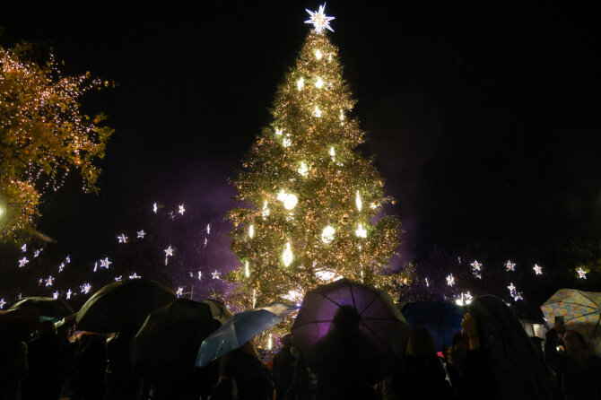 Άναψε το Χριστουγεννιάτικο δέντρο της Αθήνας στο Σύνταγμα – Υπό βροχή οι εκδηλώσεις