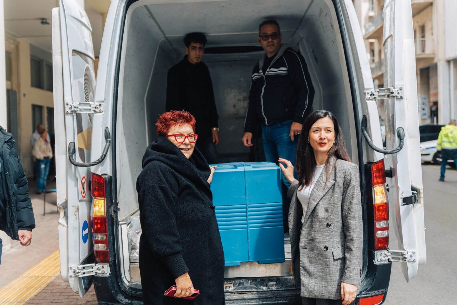 Στη συνέχεια, τα γεύματα μεταφέρθηκαν με ειδικό φορτηγό catering της εταιρείας Δειπνοσοφιστήριον, στο Πολυδύναμο Κέντρο Αστέγων του Δήμου Αθηναίων όπου και μοιράστηκαν στους ωφελούμενους.