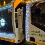 Τα απορριμματοφόρα του δήμου της Αθήνας «φόρεσαν» τα γιορτινά τους και φωτίζουν την αθηναϊκή νύχτα