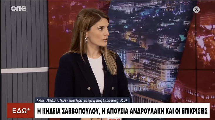 Η Αναπληρώτρια του Τομέα Δικαιοσύνης του ΠΑΣΟΚ κα. Άννα Παπαδοπούλου έδωσε συνέντευξη στο one channel και στον κύριο Ζαχαρό.