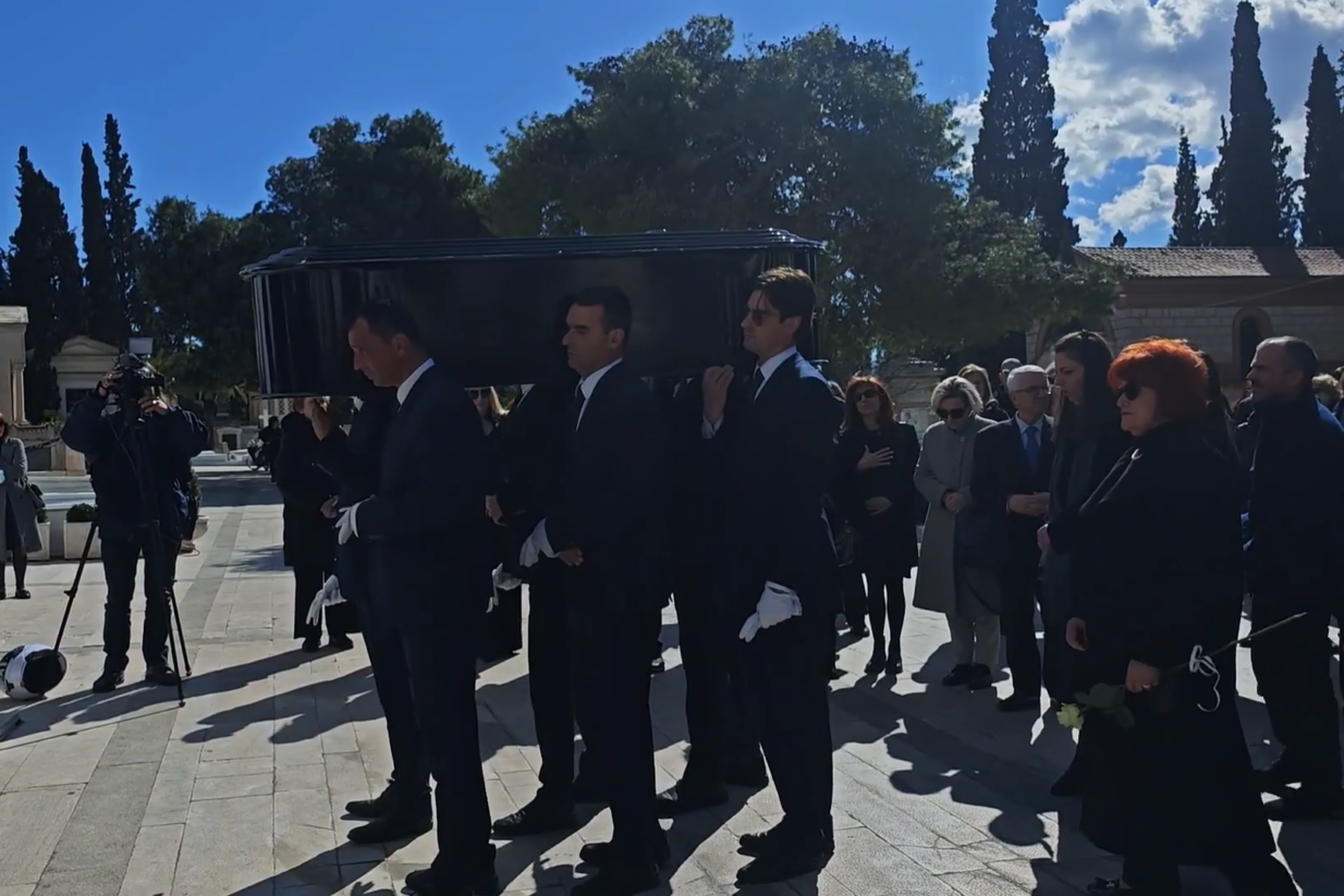 Για την κηδεία της Άννας Ψαρούδα – Μπενάκη, στο Α΄ Νεκροταφείο Αθηνών, βρίσκονται επίσης ο πρώην πρωθυπουργός Κώστας Καραμανλής, ο αντιπρόεδρος της κυβέρνησης Κωστής Χατζηδάκης και η πρώην υπουργός Ντόρα Μπακογιάννη.