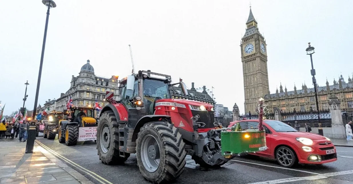 Αγρότες με τα τρακτέρ τους πραγματοποίησαν κινητοποίηση στο κέντρο του Λονδίνου, αντιδρώντας στην νομοθετική πολιτική της βρετανικής κυβέρνησης.