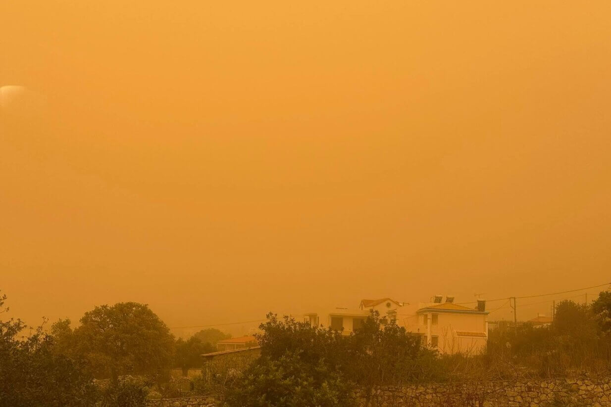 Εκτός από το κίτρινο τοπίο που επικρατεί, η αυξημένη συγκέντρωση αφρικανικής σκόνης κάνει την ατμόσφαιρα αποπνικτική. Το φαινόμενο θα αρχίσει να υποχωρεί σταδιακά από το απόγευμα.