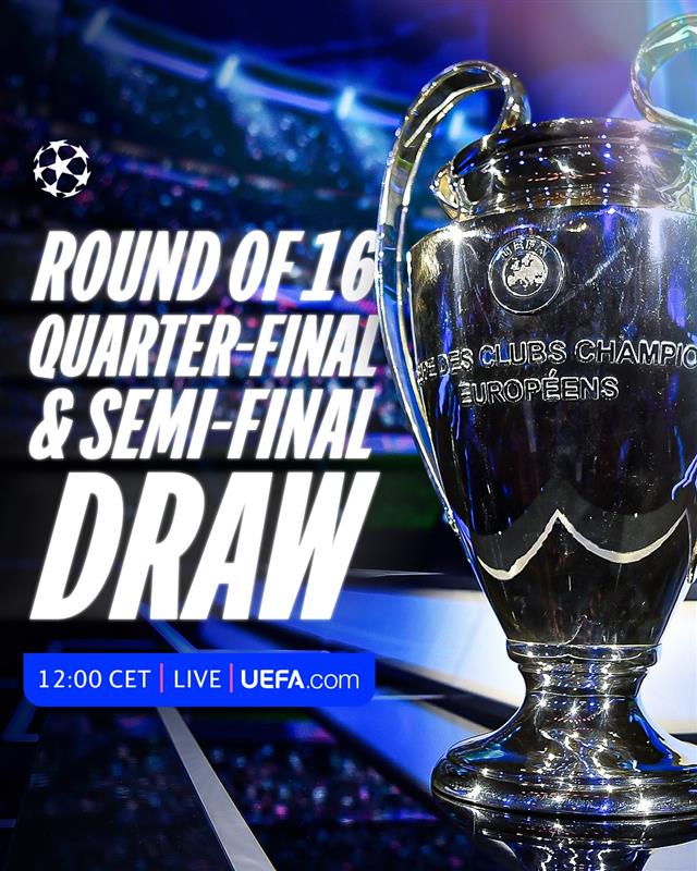 Οι πρώτοι αγώνες της φάσης των 16 θα γίνουν στις 10-11 Μαρτίου και οι ρεβάνς στις 17-18 Μαρτίου.