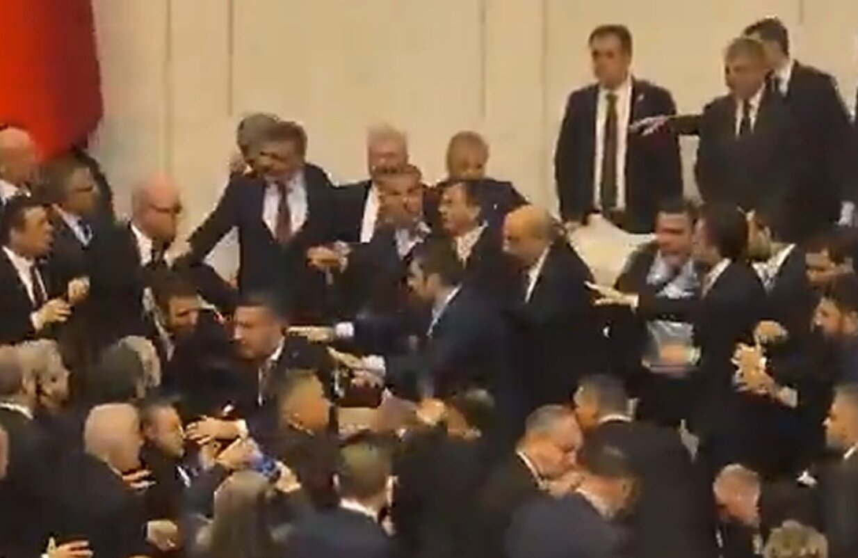 Σκηνές απείρου κάλλους με γροθιές και κλωτσιές μεταξύ βουλευτών εκτυλίχθηκαν στην Ολομέλεια της Τουρκικής Εθνοσυνέλευσης κατά τη διάρκεια της ορκωμοσίας του Ακίν Γκιουρλέκ ως υπουργού Δικαιοσύνης και του Μουσταφά Τσιφτσί ως υπουργού Εσωτερικών, με αντιπαράθεση μεταξύ βουλευτών του CHP και του κυβερνώντος AKP.