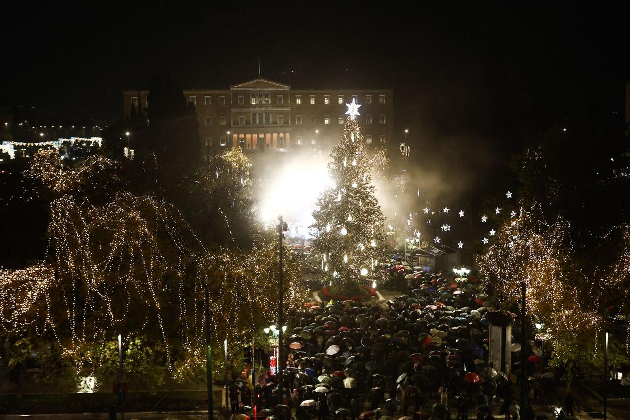 Παρά τη βροχή, το Σύνταγμα γέμισε με κόσμο για τη φωταγώγηση του χριστουγεννιάτικου δέντρου της πόλης μας!