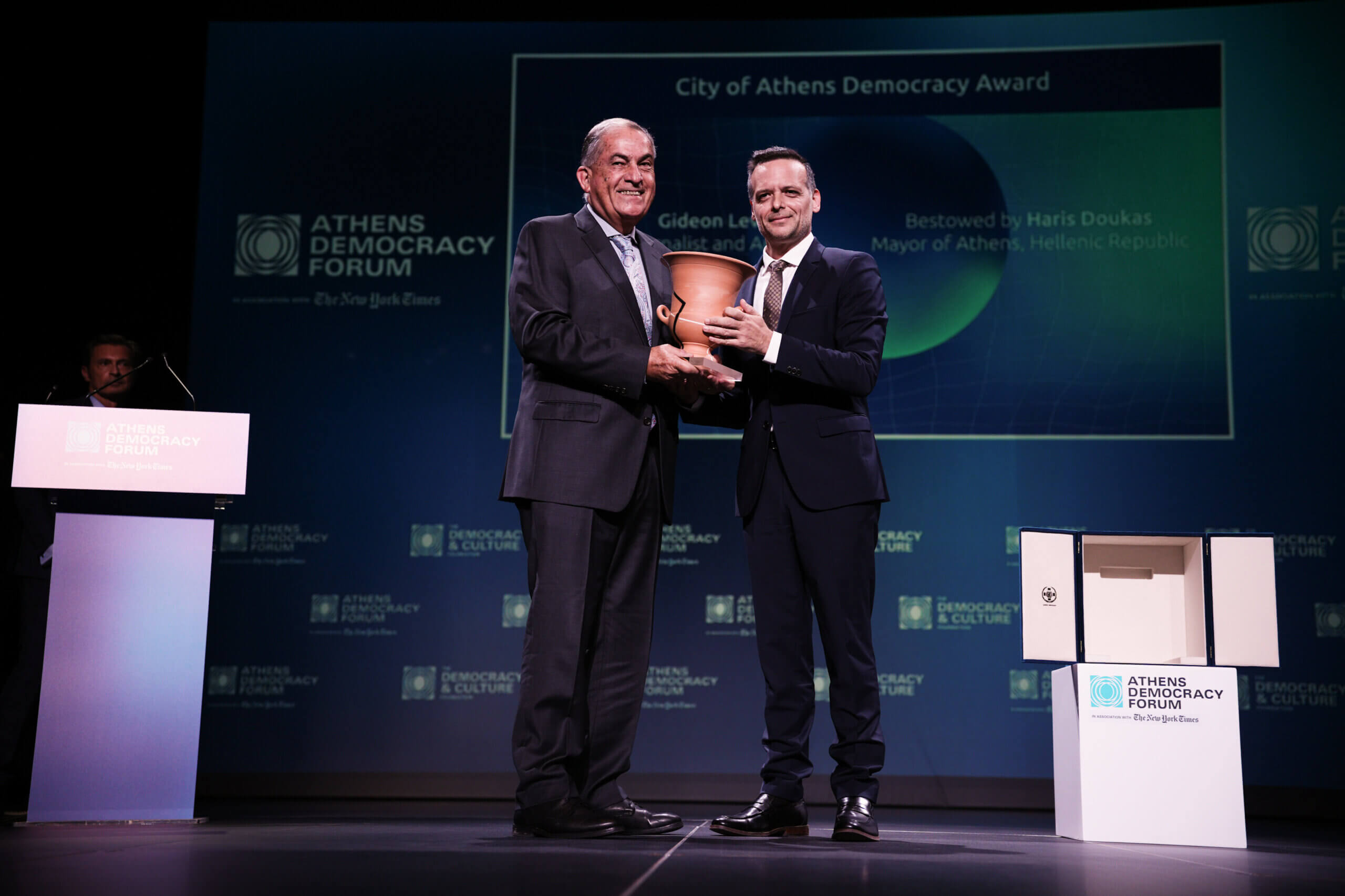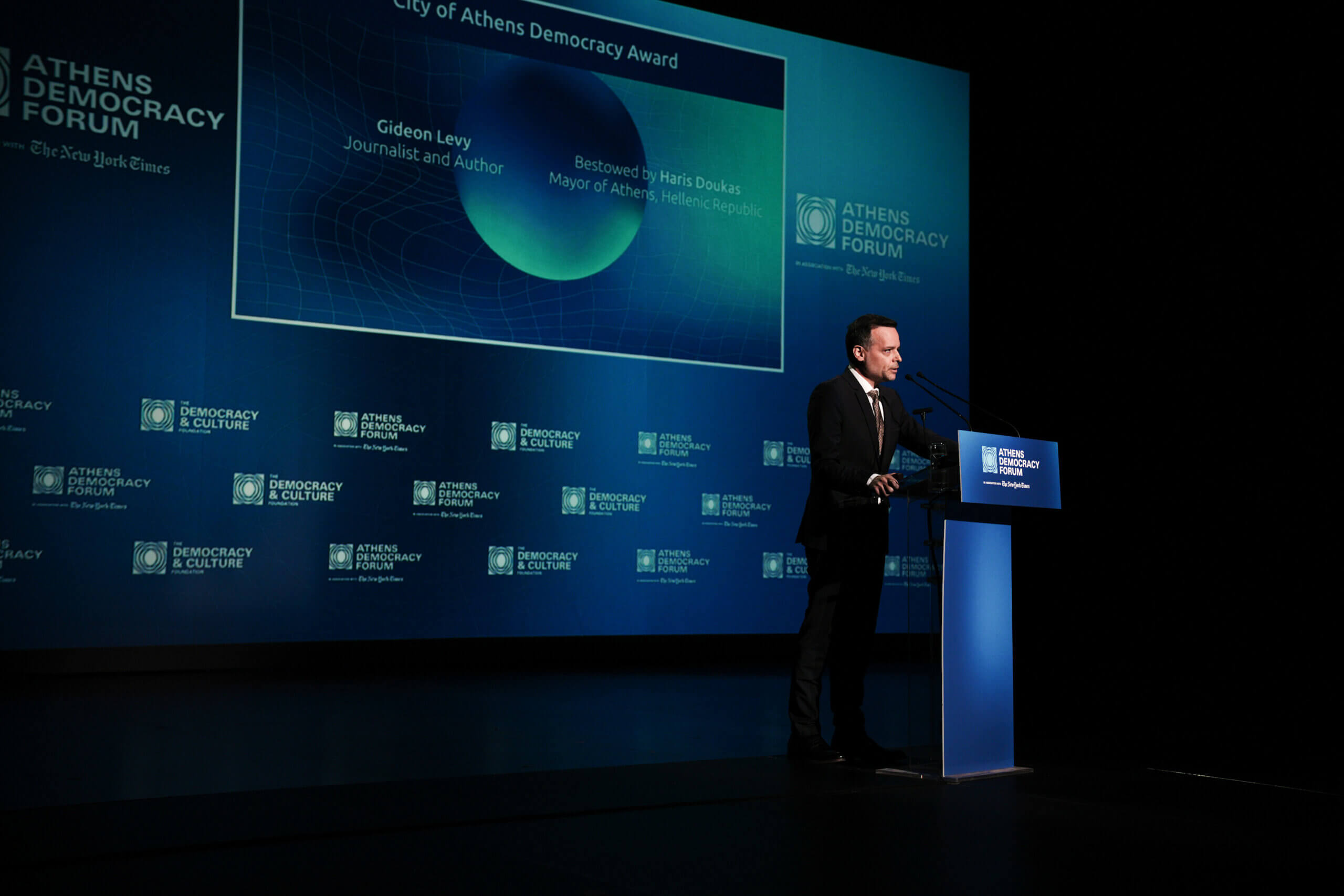 Το Βραβείο Δημοκρατίας 2025 απένειμε ο Δήμαρχος Αθηναίων, Χάρης Δούκας, στον Ισραηλινό δημοσιογράφο και συγγραφέα, Γκίντεον Λέβι, κατά τη διάρκεια τελετής, που πραγματοποιήθηκε την Τετάρτη 1 Οκτωβρίου, στο Ολύμπια, Δημοτικό Μουσικό Θέατρο «Μαρία Κάλλας».