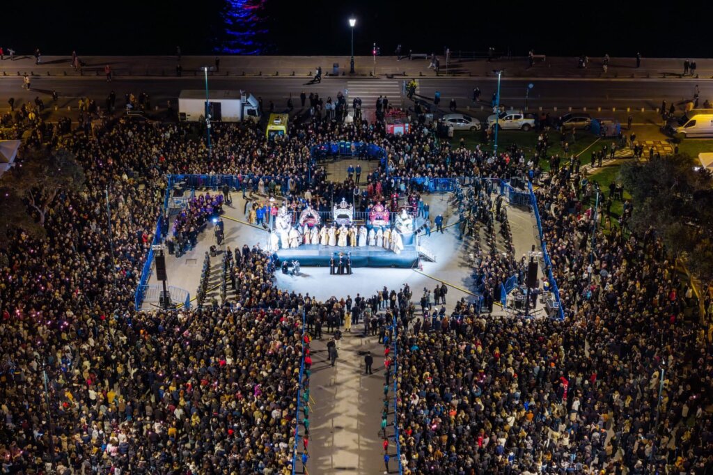 Σε ένα απέραντο σκηνικό κατάνυξης μετατράπηκε το κέντρο στη Θεσσαλονίκη με πλήθος κόσμου και χιλιάδες πιστούς να ακολουθούν τις περιφορές των επταφίων που κατέληξαν στην πλατεία Αριστοτέλους