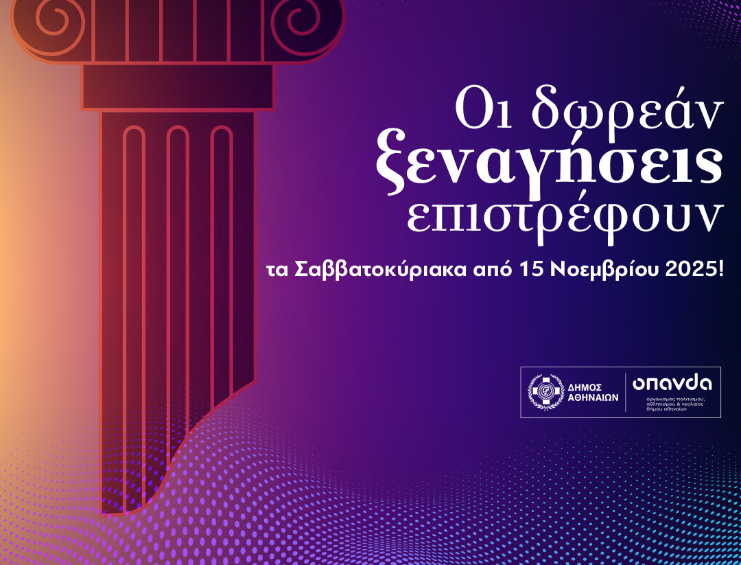 Μία ξεχωριστή εμπειρία, όπου το παρελθόν συναντά το παρόν στις γειτονιές και τα τοπόσημα της πόλης, καλούνται να ζήσουν για μία ακόμη φορά οι κάτοικοι της Αθήνας. Ο Δήμος Αθηναίων προσφέρει δωρεάν ξεναγήσεις σε ιστορικά σημεία, αρχαιολογικούς χώρους, μουσεία, χώρους πολιτισμού και τέχνης της πόλης. Οι ξεναγήσεις, που διοργανώνονται από τον Οργανισμό Πολιτισμού, Αθλητισμού και Νεολαίας (ΟΠΑΝΔΑ) σε συνεργασία με το Σωματείο Διπλωματούχων Ξεναγών Αθήνας, ξεκινούν το Σάββατο 15 Νοεμβρίου 2025.