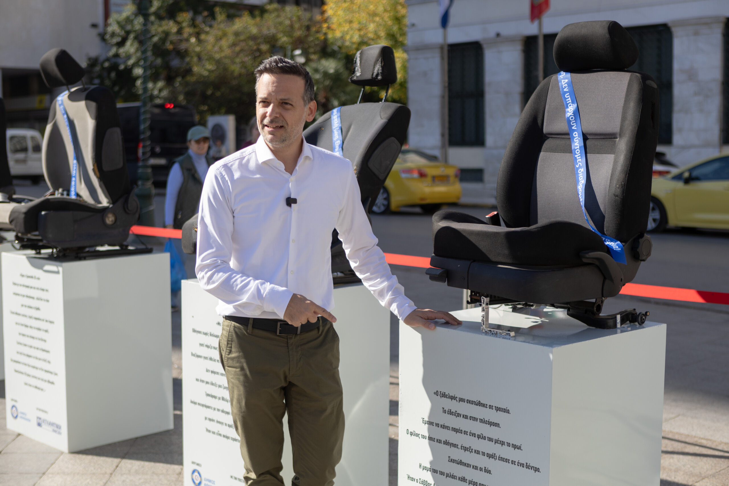 Η έκθεση που φιλοξενήθηκε στις 14 Νοεμβρίου στην Πλατεία Κοτζιά, στις 15 Νοεμβρίου στην Πλατεία Συντάγματος και στις 16 Νοεμβρίου στο Πάρκο Ελευθερίας, περιελάμβανε βάσεις με καθίσματα αυτοκινήτων, τα οποία αναγράφουν σύντομες ιστορίες επιζώντων τροχαίων ατυχημάτων.