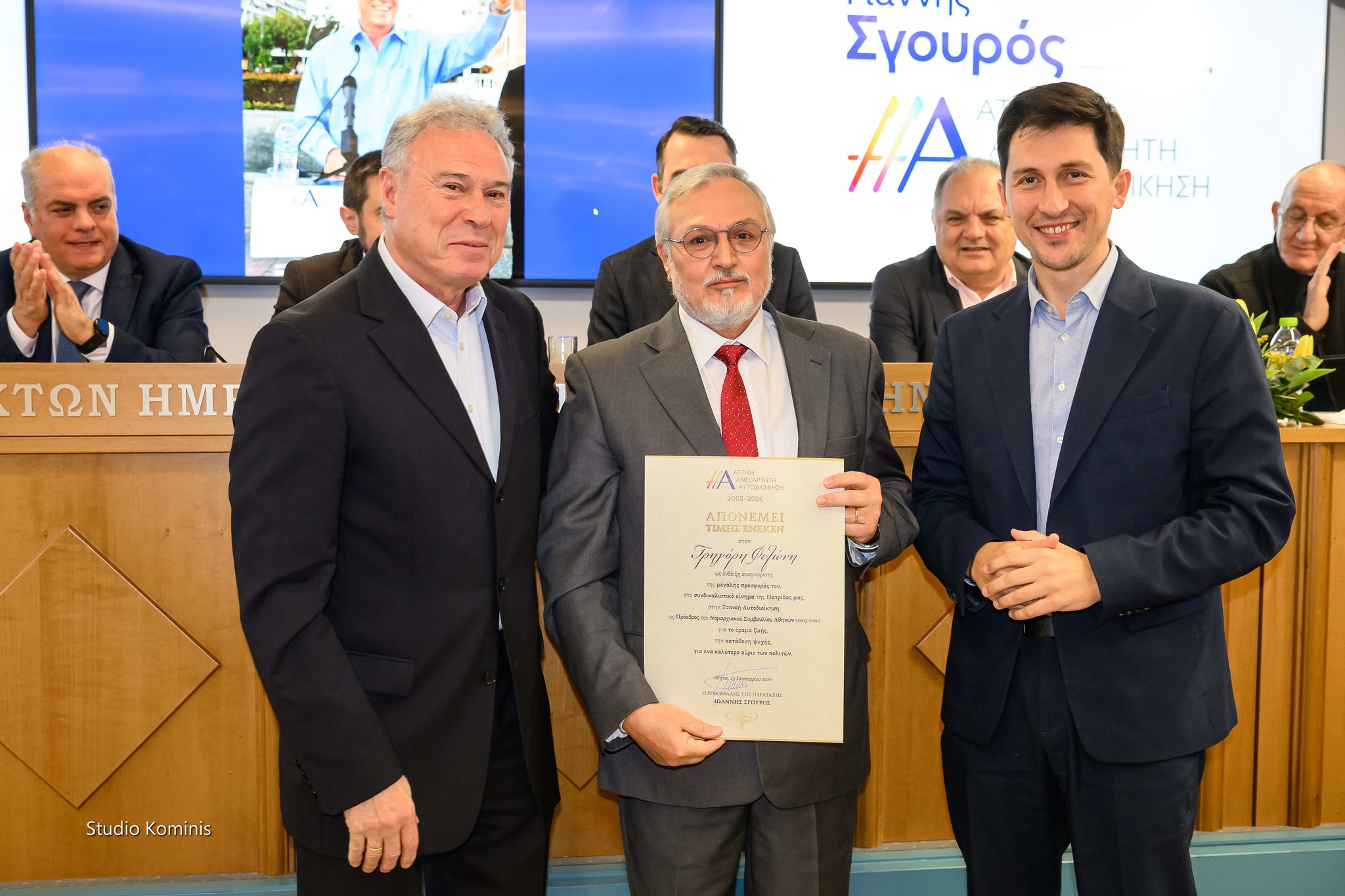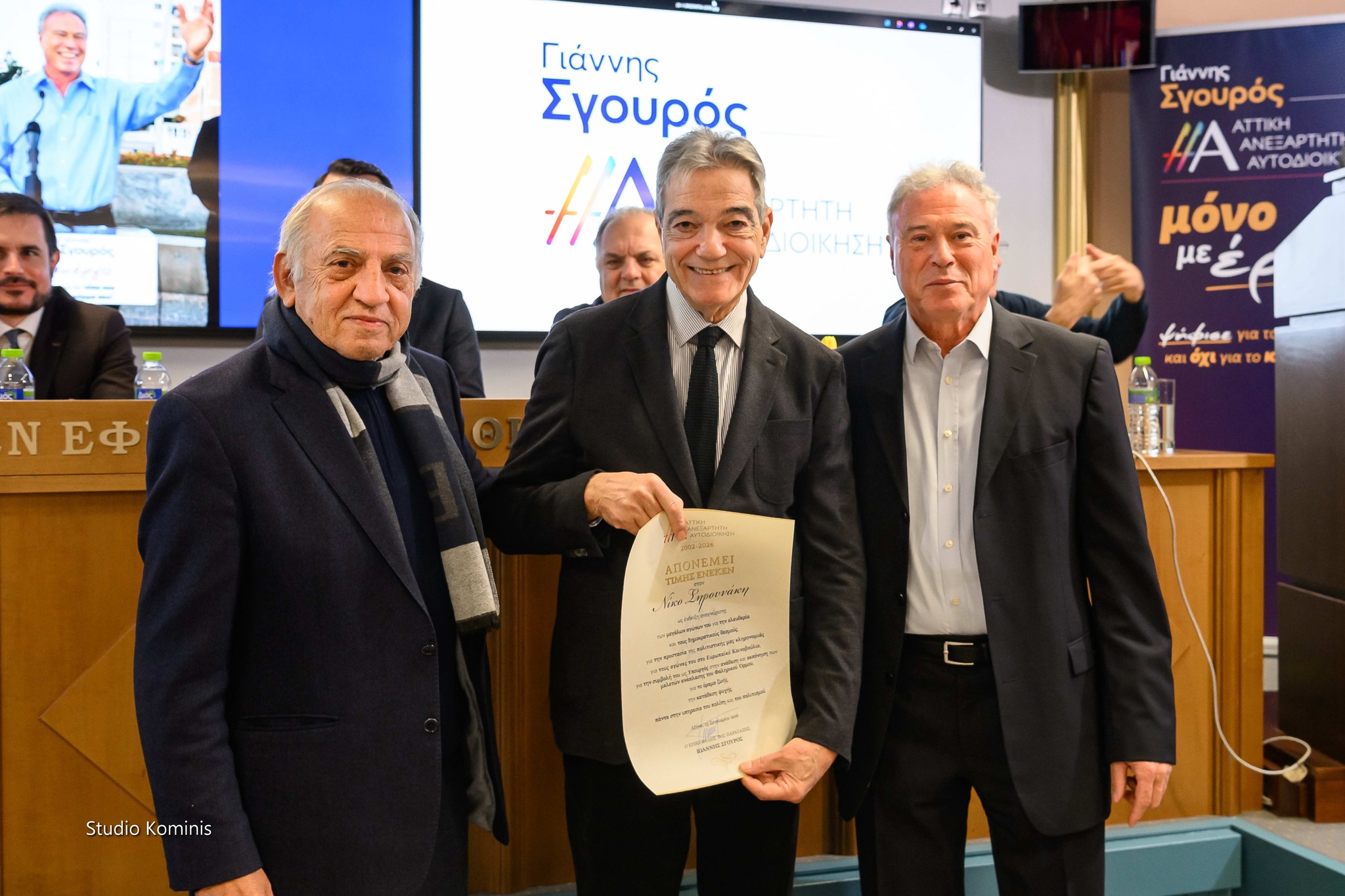 Τον λόγο στη συνέχεια πήραν οι τρεις βραβευθέντες κ.κ. Νίκος Σηφουνάκης, Νίκος Χριστοδουλάκης και Γρηγόρης Φελώνης. Ο Νίκος Σηφουνάκης, αφού ευχαρίστησε τον Γιάννη Σγουρό και την παράταξη για την τιμητική βράβευση, αναφέρθηκε μεταξύ άλλων και στο εμβληματικό έργο της Ανάπλασης του Φαληρικού Όρμου από τον σπουδαίο διεθνούς φήμης αρχιτέκτονα Renzo Piano. Τόνισε μάλιστα το γεγονός ότι η ελληνική Πολιτεία δεν έχει δείξει τον απαιτούμενο σεβασμό σε έναν άνθρωπο που έχει δημιουργήσει και συνεχίζει να δημιουργεί σημαντικό έργο στην χώρα μας.