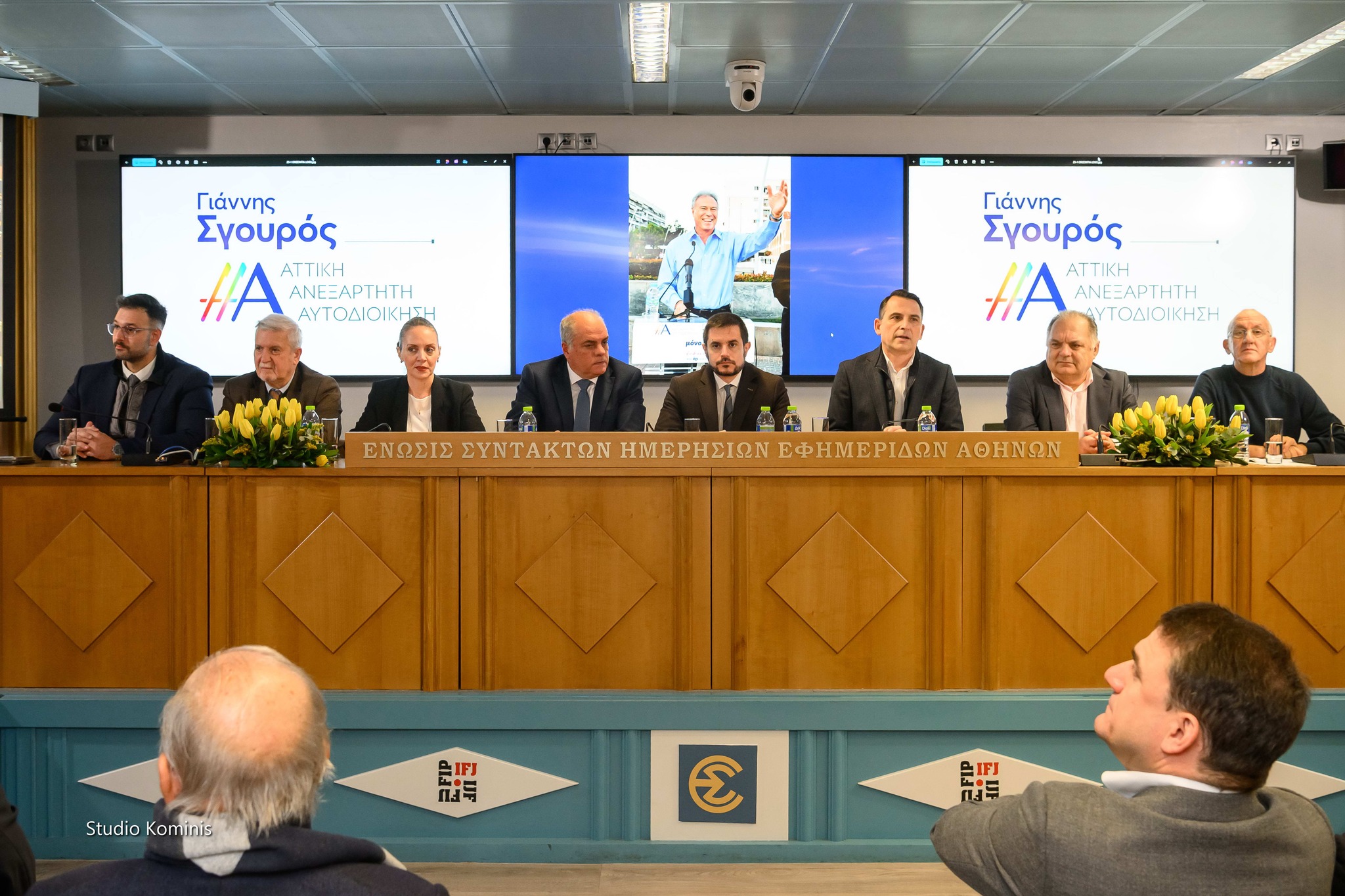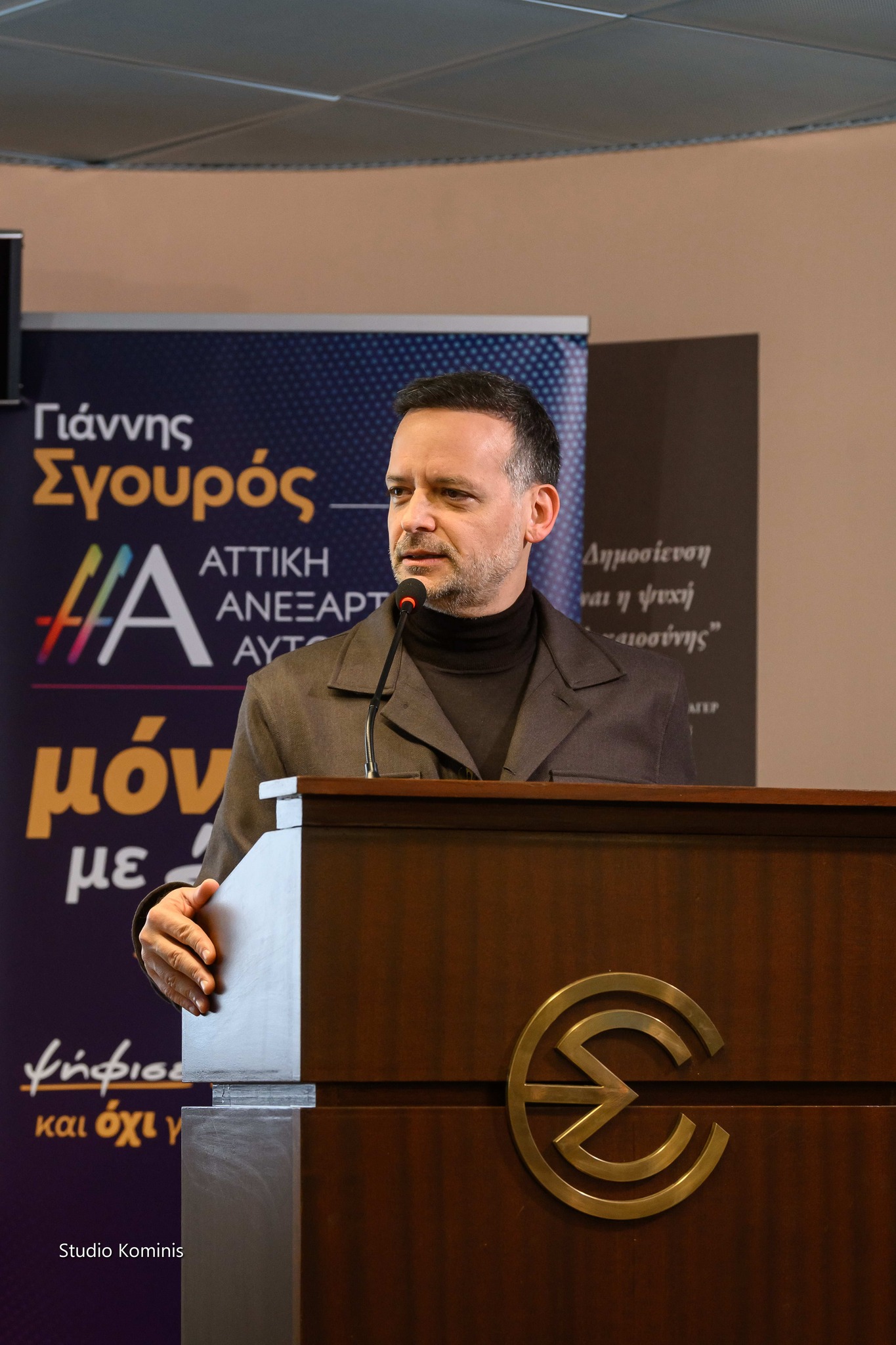 Στην ομιλία του ο επικεφαλής της παράταξης κ. Γιάννης Σγουρός αναφέρθηκε στην αδιάλειπτη παρουσία της στα κοινά, για περισσότερες από δύο δεκαετίες έχοντας πάντα το ίδιο πάθος και την ίδια αφοσίωση στον αγώνα για τη βελτίωση της ποιότητας ζωής και της καθημερινότητας των πολιτών της Περιφέρειας Αττικής χωρίς εξαρτήσεις. Ο Γιάννης Σγουρός αναφέρθηκε στο όραμα, τον σκοπό και τις αξίες της παράταξης που αποτελούν «….τη βάση μας στις μάχες που δίνουμε καθημερινά….».