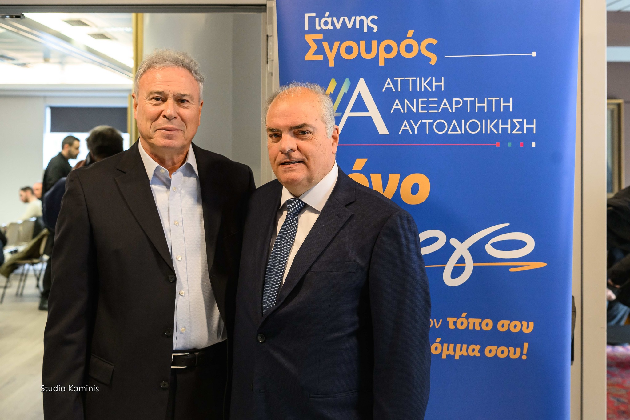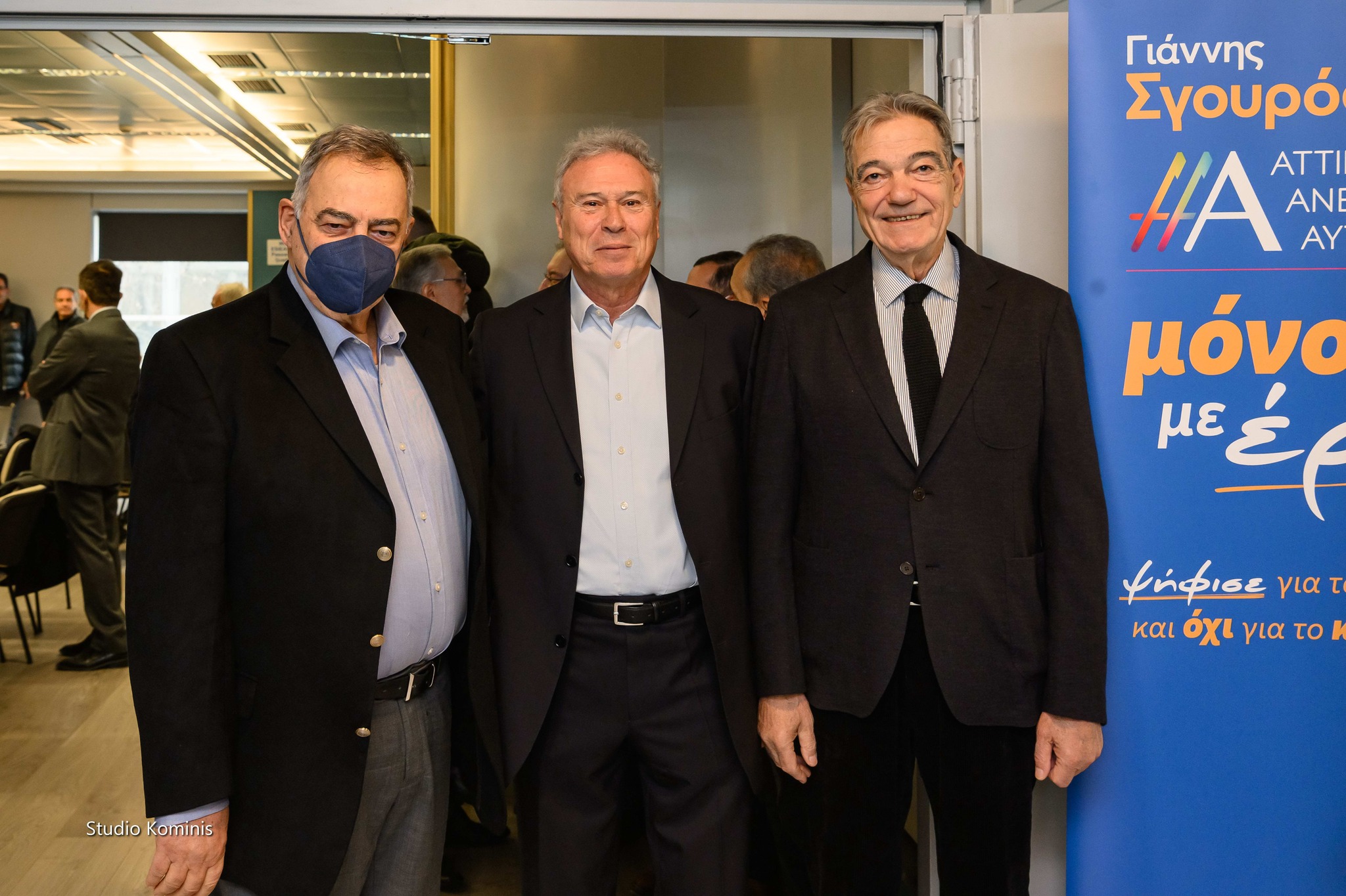 Στην εκδήλωση απήυθυναν χαιρετισμό ο Δήμαρχος Αθηναίων κ. Χάρης Δούκας, ο οποίος αναφέρθηκε στην άριστη συνεργασία που έχει με τον κ. Σγουρό για τα πολλά προβλήματα που αφορούν την Αθήνα και ο εκπρόσωπος Τύπου του ΠΑ.ΣΟ.Κ – ΚΙΝ.ΑΛ κ. Κώστας Τσουκαλάς, ο οποίος μετέφερε και το μήνυμα του Προέδρου κ. Νίκου Ανδρουλάκη αναγνωρίζοντας το έργο που παράγει η παράταξη «Αττική Ανεξάρτητη Αυτοδιοίκηση» επί 24 χρόνια και ευχαρίστησε τον κ. Σγουρό για τη συνεργασία που έχουν.