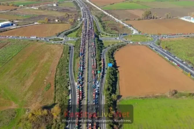Συγκλονιστικό βίντεο από ψηλά: Το μεγάλο αγροτικό μπλόκο της Καρδίτσας στον Ε65