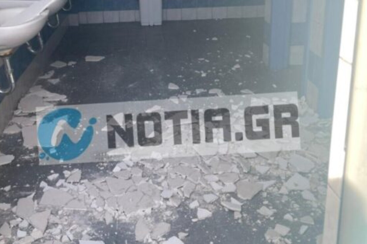 Σύμφωνα με τα όσα έγιναν γνωστά στο notia.gr εν μέσω λειτουργίας του σχολείου τμήμα της οροφής στις τουαλέτες κατέρρευσε και από θαύμα γλιτώσαν τον τραυματισμό τρεις μαθητές που ήταν εκεί.