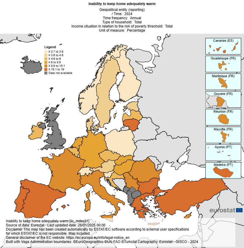Τρομάζουν τα νούμερα σύμφωνα με τη Eurostat που το 19% των Ελλήνων δεν μπορεί να έχει επαρκή θέρμανση στο σπίτι του όταν το ποσοστό στην Ε.Ε. για το 2024 ήταν στο 9.6%