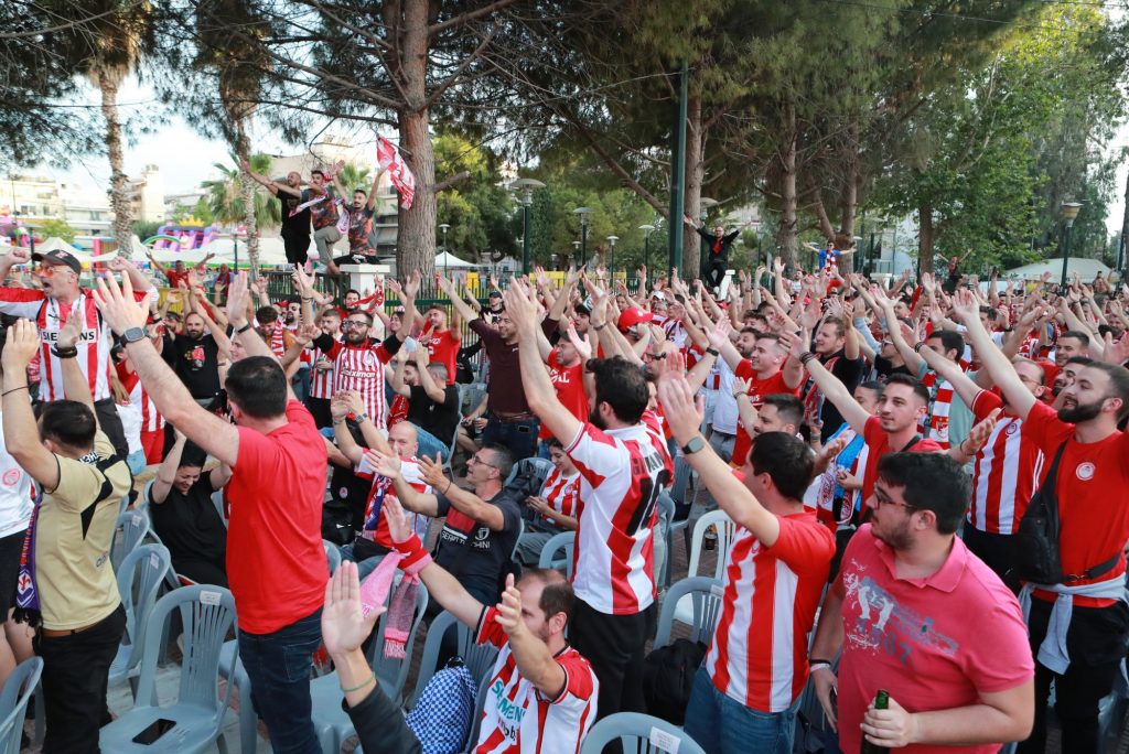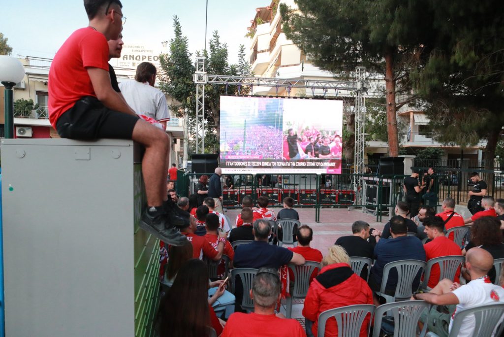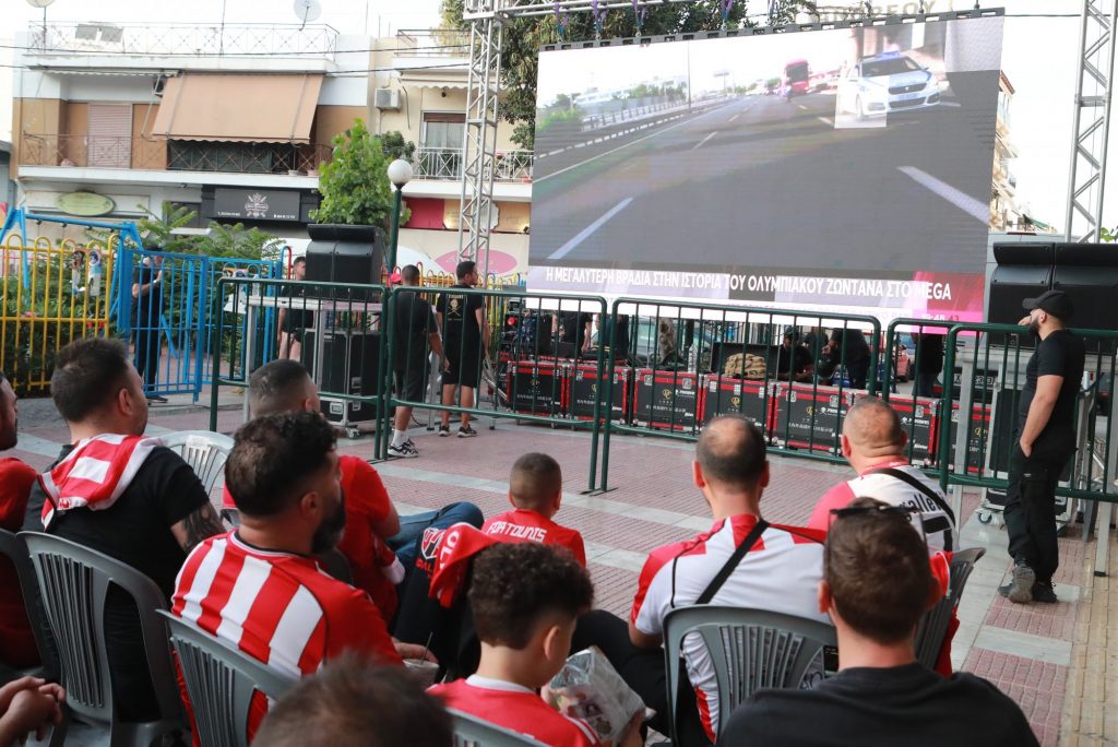 Ήδη στον Πειραιά οι χώροι που με πρωτοβουλία του προέδρου των «ερυθρολεύκων» Βαγγέλη Μαρινάκη θα δείξουν τον αγώνα από τη συχνότητα του MEGA, έχουν κατακλιστεί από φιλάθλους των «ερυθρολεύκων».