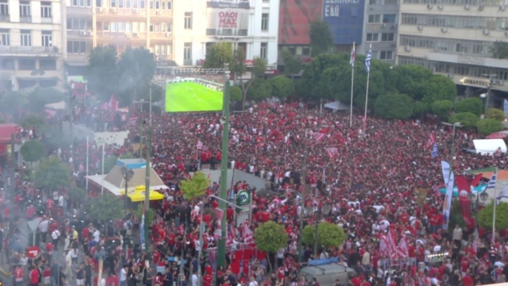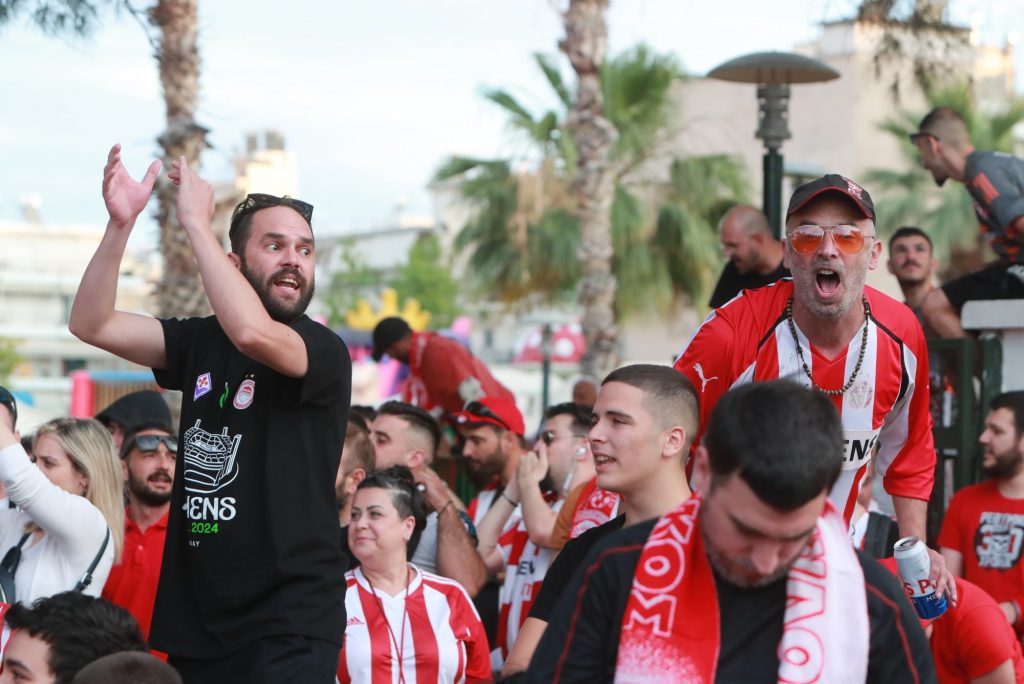 «Κατακόκκινες» είναι από νωρίς το απόγευμα οι πλατείες και οι χώροι που θα μεταδοθεί ζωντανά η σπουδαία αναμέτρηση του τελικού του Europa Conference League, με αντιπάλους τον Ολυμπιακό και τη Φιορεντίνα.