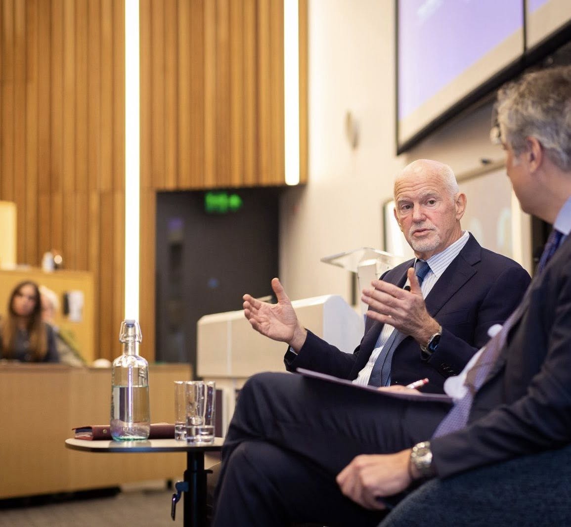 Με καθαρό πολιτικό λόγο και σαφές ευρωπαϊκό πρόταγμα, ο πρώην πρωθυπουργός Γιώργος Παπανδρέου παρενέβη από το London Business School στη συζήτηση που φιλοξένησε το Wheeler Institute for Business and Development, θέτοντας στο επίκεντρο το μέλλον της Ευρώπης σε έναν κόσμο γεωπολιτικών αναταράξεων και μεταβαλλόμενων ισορροπιών.