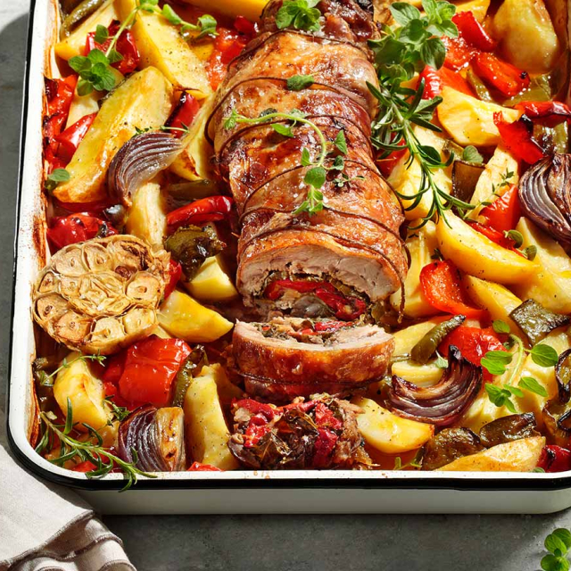 - Ψήνουμε το φαγητό σε καλά προθερμασμένο φούρνο, στους 180°C, στον αέρα, στη μεσαία σχάρα, για μία ώρα περίπου.