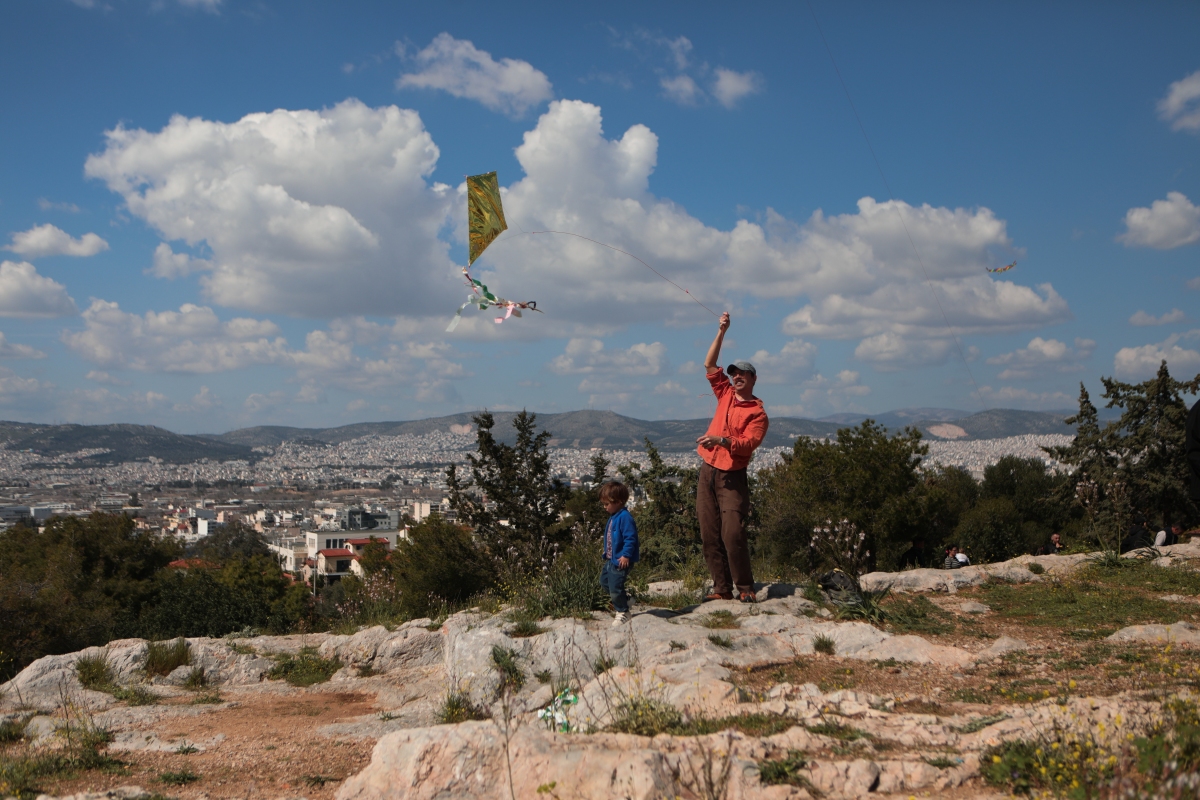 Από νωρίς το πρωί, ο λόφος γεμίζει χαρταετούς, οικογένειες και παρέες που απολαμβάνουν το πέταγμά τους στον ουρανό της Αθήνας, με φόντο την Ακρόπολη. Η γιορτινή ατμόσφαιρα πλαισιώνεται από μουσική και αυθόρμητα πικνίκ, τιμώντας το έθιμο της ημέρας και σηματοδοτώντας την έναρξη της Σαρακοστής.