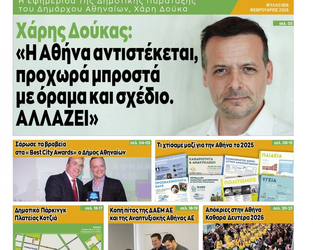 Το νέο φύλλο της εφημερίδας «ΑθήναΤΩΡΑ» καταγράφει, με τεκμηριωμένο λόγο και σαφή πολιτική στόχευση, το αποτύπωμα μιας χρονιάς που σηματοδότησε τη μετάβαση της πρωτεύουσας σε ένα πιο ώριμο μοντέλο αστικής διακυβέρνησης.