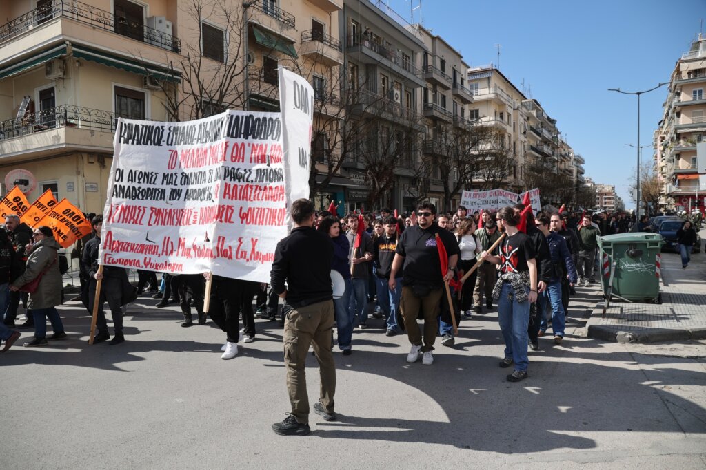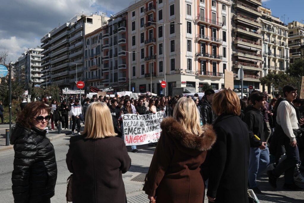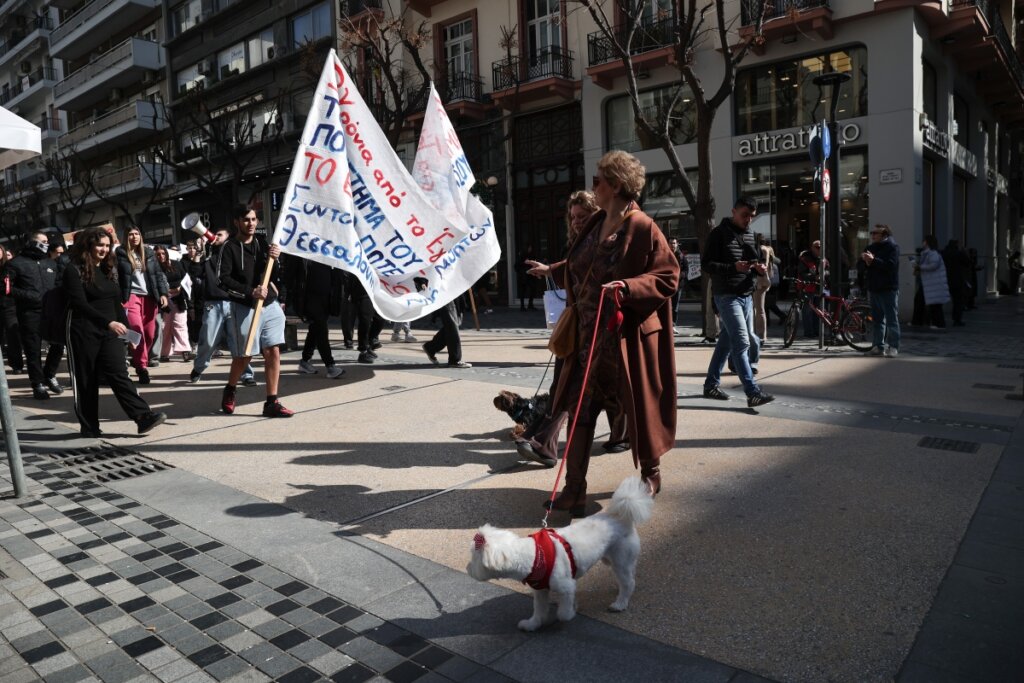 Συγκέντρωση και πορεία πραγματοποιήθηκε νωρίτερα και στη Θεσσαλονίκη, όπου βρίσκονται σε κατάληψη τουλάχιστον 20 σχολεία και πέντε σχολές.