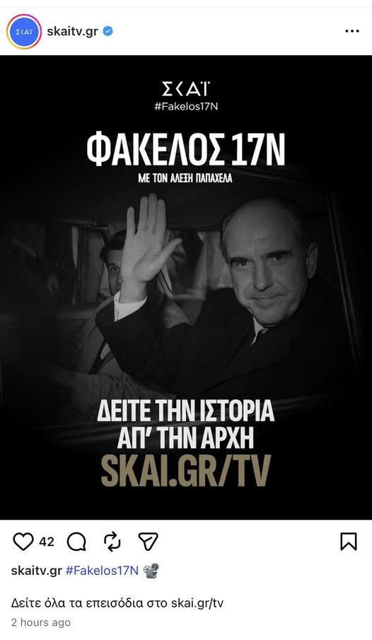Μεγάλη πρωβοκάτσια έκανε χθες ο ΣΚΑΪ καθώς στον επίσημο λογαριασμό του στο instagram ανέβασε φώτο για το ντοκιμαντέρ της εγκληματικής οργάνωσης «17Ν»