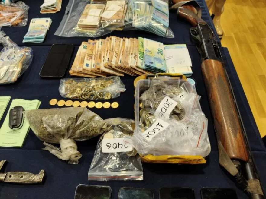 Στην κατοχή των 13 ατόμων που συνελήφθησαν για συμμετοχή σε εγκληματική οργάνωση στον Βόλο εντοπίστηκαν σχεδόν 500 γραμμάρια κοκαΐνης, περίπου 60.000 ευρώ σε μετρητά, πέντε μαχαίρια, δύο κάμερες παρακολούθησης, τρεις καραμπίνες καθώς και ποσότητες φυσιγγίων.