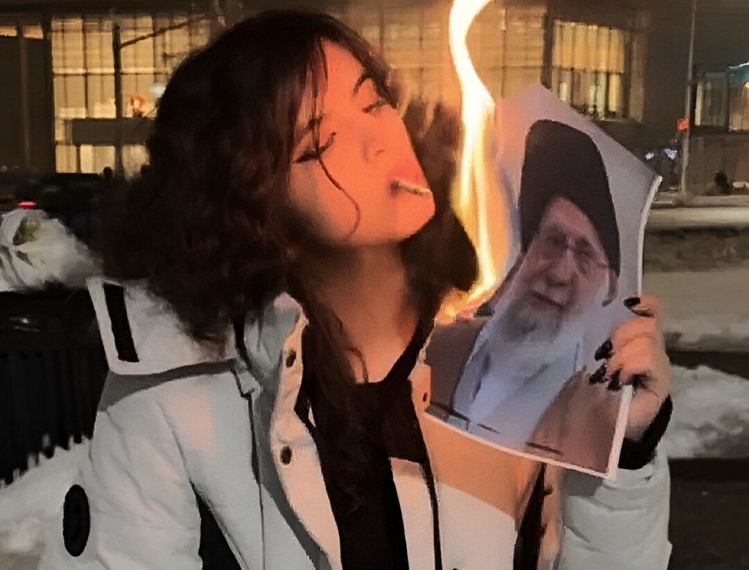 Νεαρές Ιρανές γυναίκες καίνε φωτογραφίες του ανώτατου ηγέτη Αγιατολαχ Αλί Χαμενεϊ και χρησιμοποιούν τις φλόγες τους για να ανάψουν τα τσιγάρα τους
