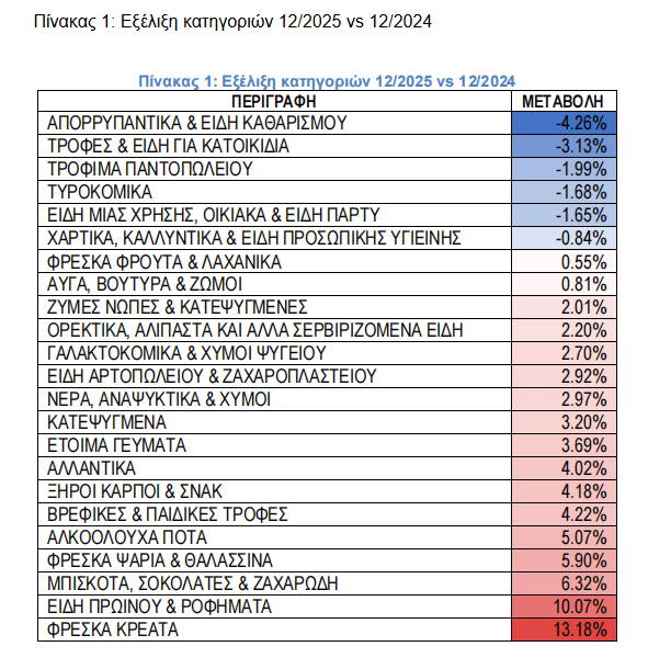 Μεγαλύτερες αυξήσεις τον Ιανουάριο 2026 σε σχέση με τον Ιανουάριο 2025 καταγράφονται στις κατηγορίες: