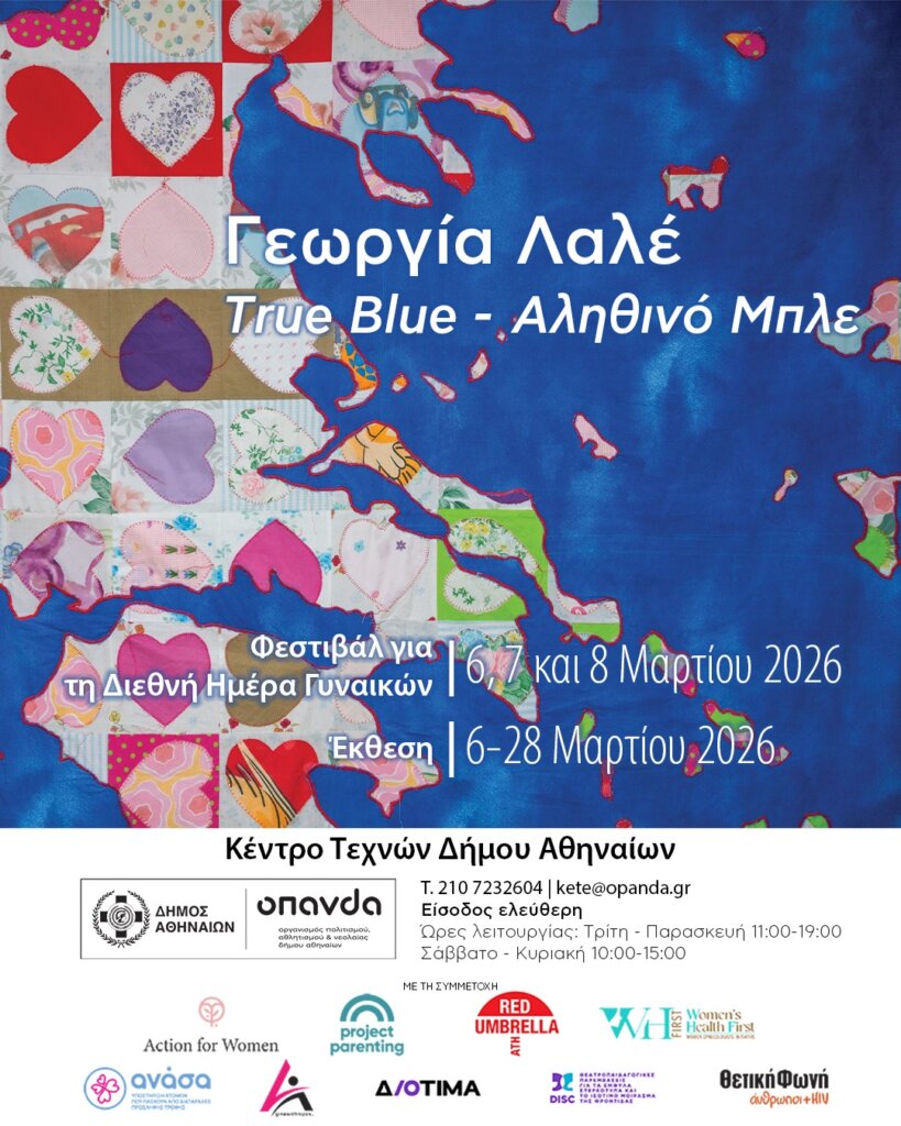 Οι εκδηλώσεις αναπτύσσονται σε κεντρικούς πολιτιστικούς χώρους της πόλης και στον δημόσιο χώρο, με έμφαση στην καλλιτεχνική έκφραση, τον δημόσιο διάλογο και τη θεσμική παρέμβαση για την έμφυλη ισότητα. Το πρόγραμμα περιλαμβάνει το φεστιβάλ «True Blue – Αληθινό Μπλε» της Γεωργίας Λαλέ στο Κέντρο Τεχνών Δήμου Αθηναίων, στο πλαίσιο του οποίου έχει προγραμματιστεί την Κυριακή 8 Μαρτίου στις 18:00, συζήτηση με εκπροσώπους των φορέων ΔΙΟΤΙΜΑ, Red Umbrella Athens, Action for Women, ΑΝΑΣΑ, Women’s Health First, Γίνε Άνθρωπος και Project Parenting, με  τίτλο «ΟΛΕΣ ΜΑΖΙ» την οποία θα προλογίσει ο Δήμαρχος Αθηναίων, Χάρης Δούκας