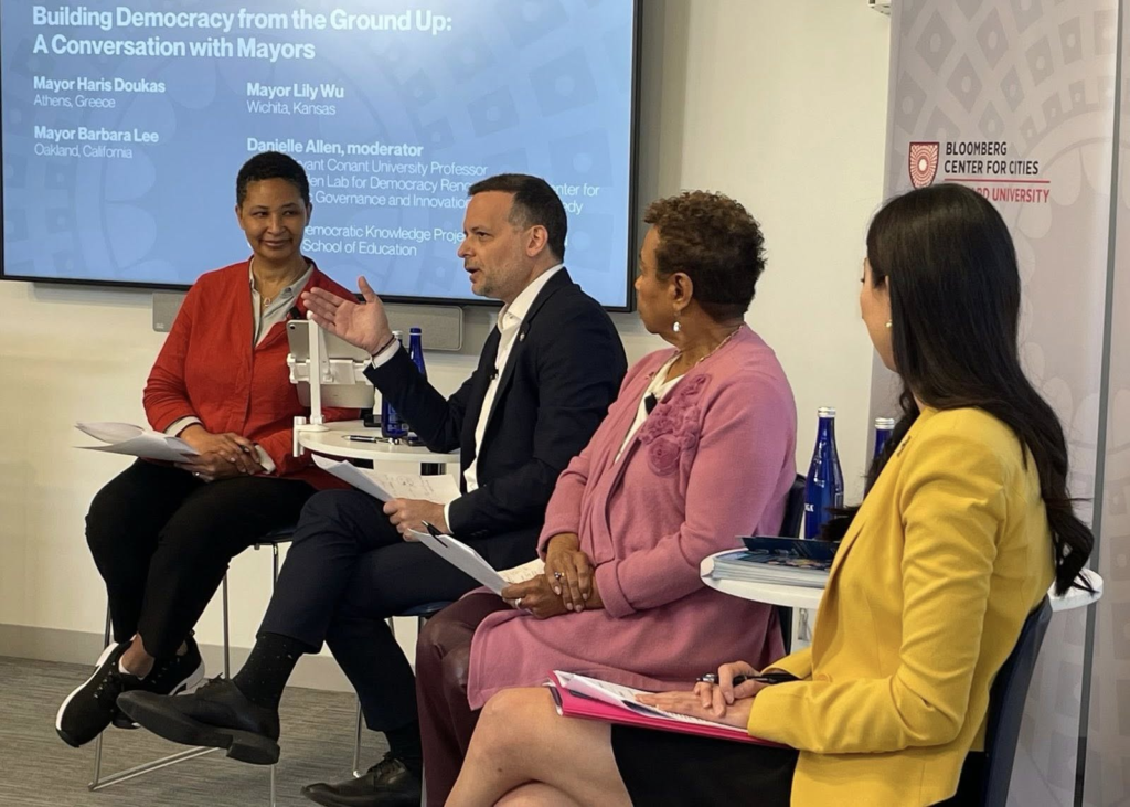 Σε αυτό το πλαίσιο εντάσσεται και η συμμετοχή του κ. Χάρη Δούκα σε πάνελ που πραγματοποιήθηκε στις 14 Απριλίου στο Harvard Kennedy School, με αντικείμενο την ενίσχυση της δημοκρατίας σε τοπικό επίπεδο. Στη συζήτηση συμμετείχαν επίσης η δήμαρχος του Oakland, Barbara Lee, και η δήμαρχος της Wichita, Lily Wu, ενώ τον συντονισμό είχε η καθηγήτρια Danielle Allen.