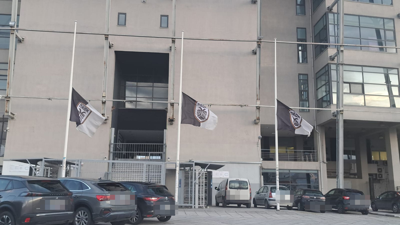 Έξω από το γήπεδο του ΠΑΟΚ στην Τούμπα οι σημαίες του Δικέφαλου Αετού κυμάτιζαν μεσίστιες από νωρίς χτες το απόγευμα ενώ φίλαθλοι αλλά και κάτοικοι της περιοχής έσπευσαν να αφήσουν λίγα λουλούδια, κεριά και κασκόλ της αγαπημένης τους ομάδας.