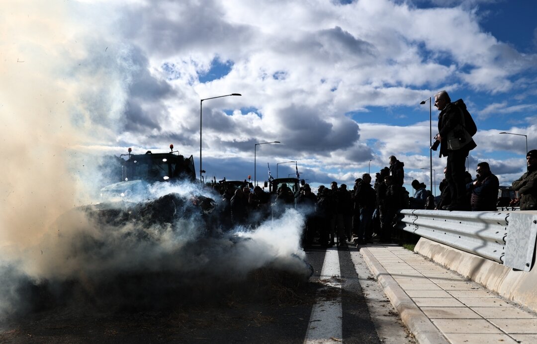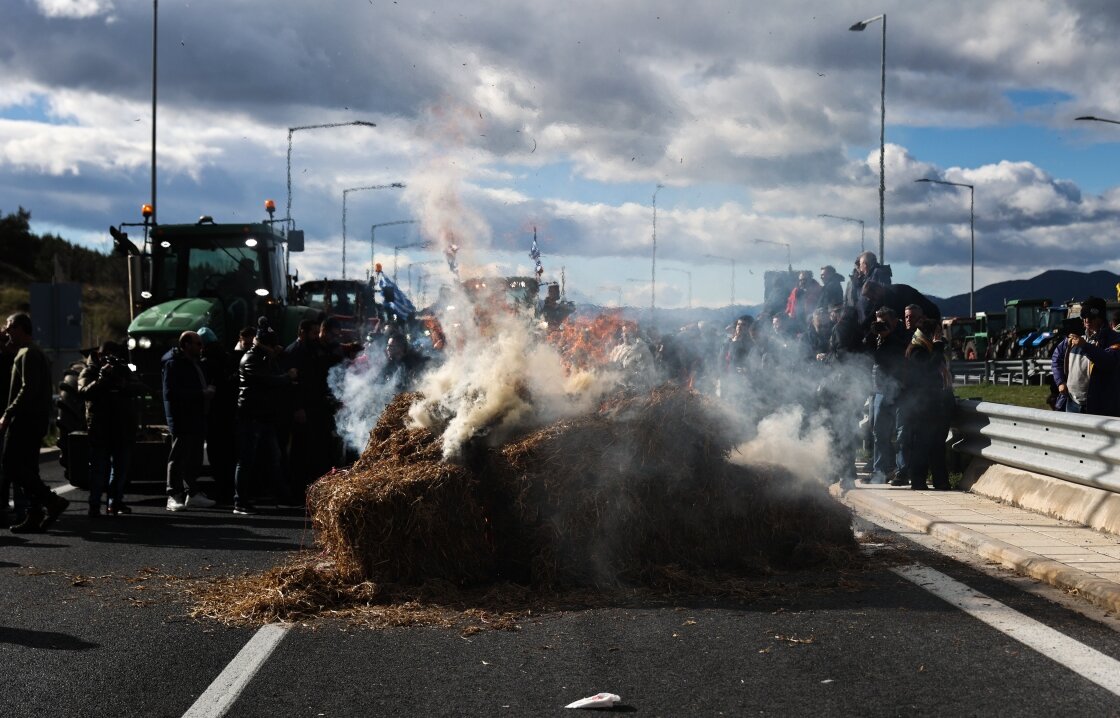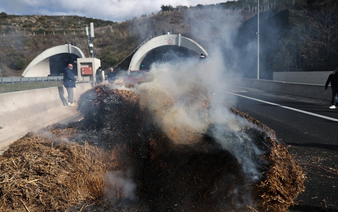 Σε αποκλεισμό των σηράγγων στα Τέμπη προχώρησαν Θεσσαλοί αγρότες από το μπλοκο της Νίκαιας, παρατάσσοντας τρακτέρ και αγροτικά μηχανήματα και διακόπτοντας την κυκλοφορία στο σημείο, ενώ έβαλαν φωτιά σε μπάλες από άχυρο.