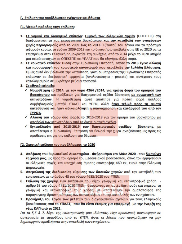 Μάλιστα, ο ίδιος σημείωνε τότε πως «μετά από έλεγχο που κατ’εντολή μου διενεργήθηκε στον Οργανισμό αποκαλύφθηκε ότι δεν είχαν καταβληθεί ενισχύσεις σε πάνω από 60.000 ΑΦΜ αγροτών (για το 2019), νούμερο εξόχως μεγάλο με τεράστιο πολιτικό αντίκτυπο , αφού οι κάτοχοι ή νόμιμοι χρήστες για χρόνια αυτών των εκτάσεων, με ένδειξη αγροτεμάχια ΔΑ (τα λεγόμενα δασικά), δεν έλαβαν τις ενισχύσεις τους για τα έτη 2018 & 2019, που για τόσα χρόνια ελάμβαναν νόμιμα».