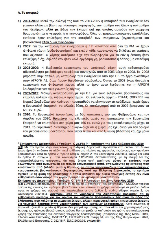 Στη συνέχεια, ο κ. Βάρρας στέκεται και στην «εμμονή των ελληνικών αρχών (ΟΠΕΚΕΠΕ) στη διαφορετικότητα του μεσογειακού βοσκότοπου και την καταβολή των ενισχύσεων χωρίς περιορισμούς από το 2009 έως το 2013. Εξ’αυτού του λόγου και τα πρόστιμα αφορούν κυρίως τα χρόνια 2009-2013 και το δικαστήριο επέβαλε στην ΕΕ το 2020 να τα επιστρέψει στην Ελληνική Δημοκρατία. Στη συνέχεια, από το 2014 μέχρι το 2020 υπήρξε μια σειρά αστοχιών σε ΟΠΕΚΕΠΕ και ΥΠΑΑΤ που θα εξηγήσω άλλη φορά».