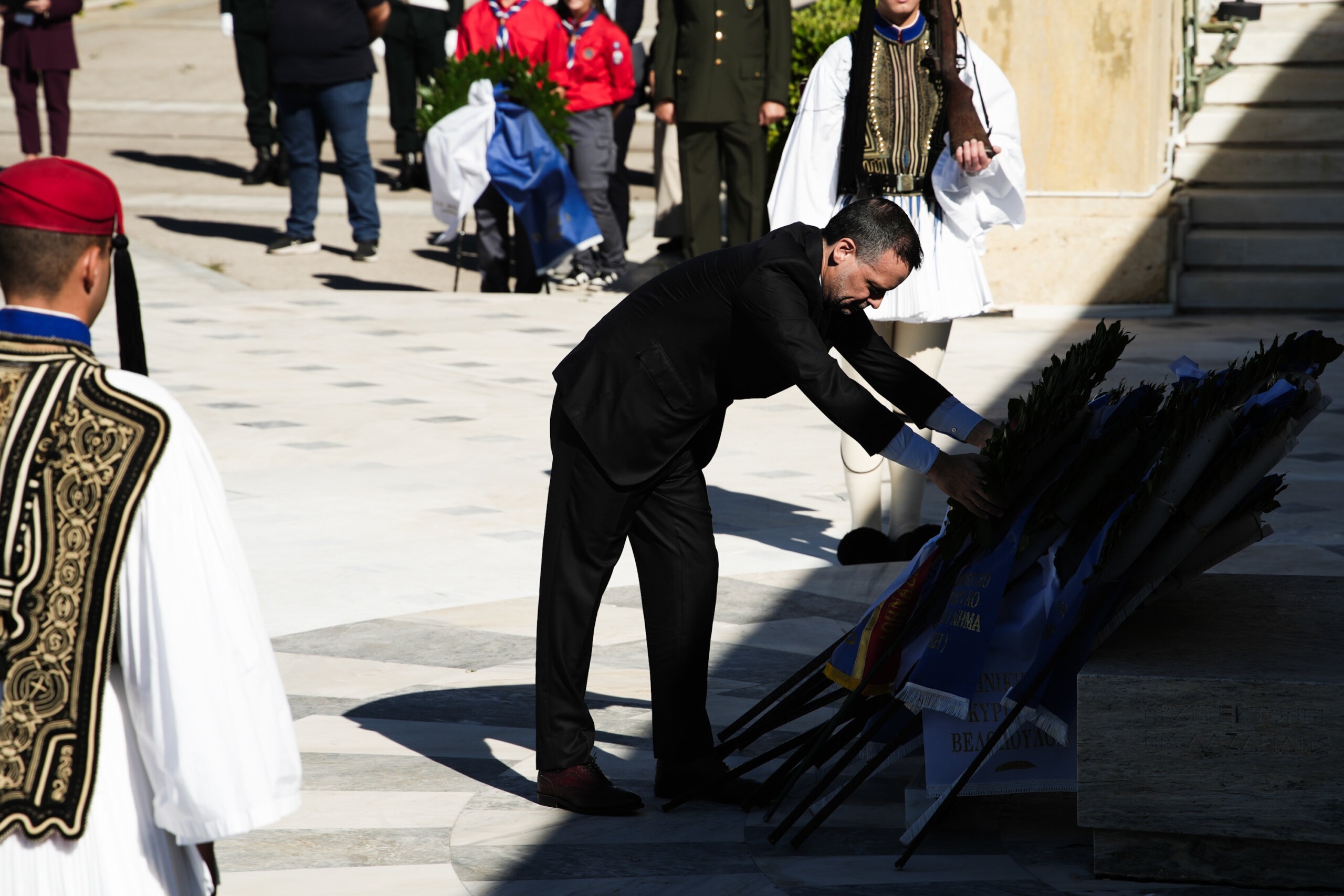 Νωρίτερα, ο Δήμαρχος Αθηναίων παρέστη στη Δοξολογία στον Καθεδρικό Ιερό Ναό του Ευαγγελισμού της Θεοτόκου και κατέθεσε στεφάνι στο Μνημείο του Άγνωστου Στρατιώτη.