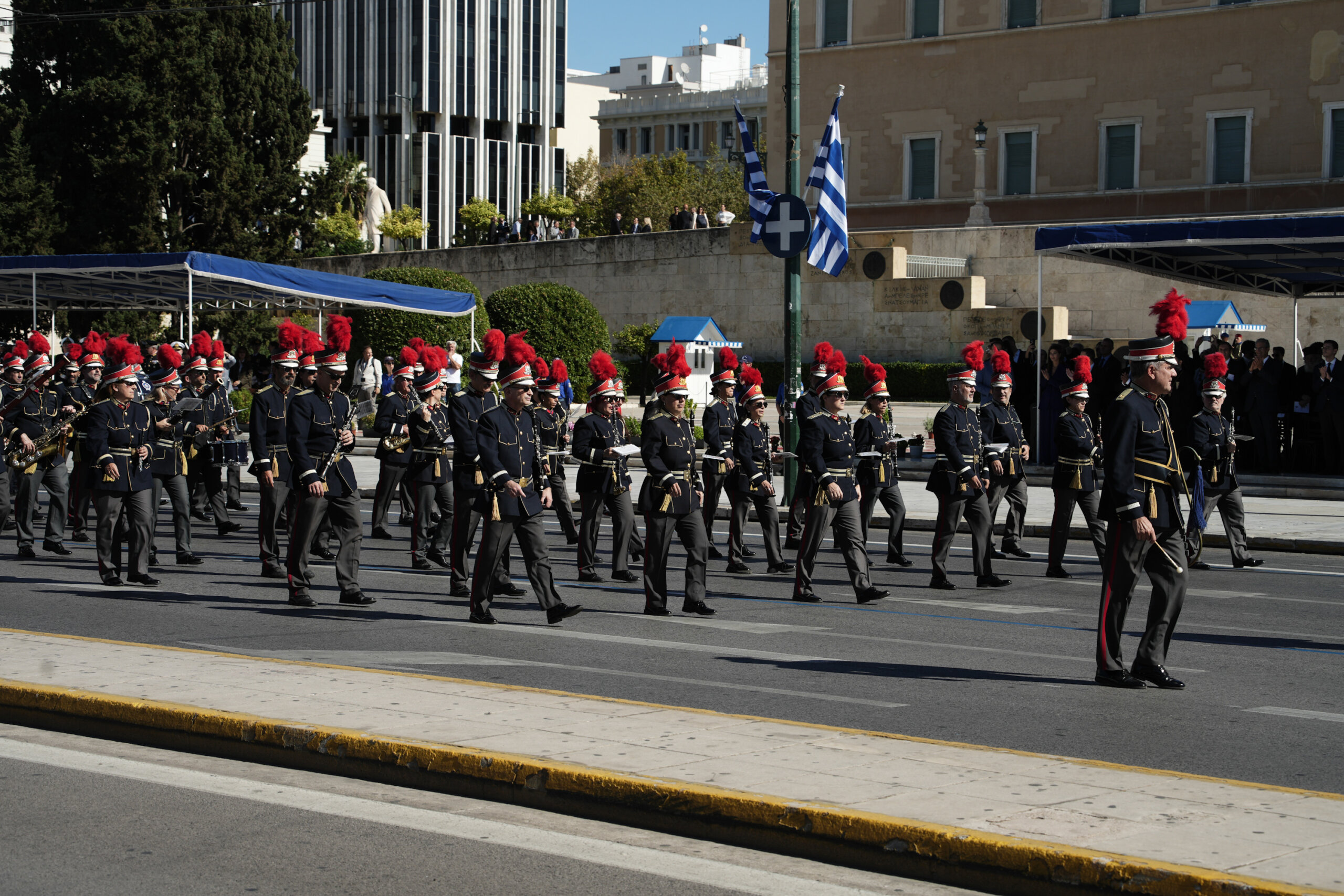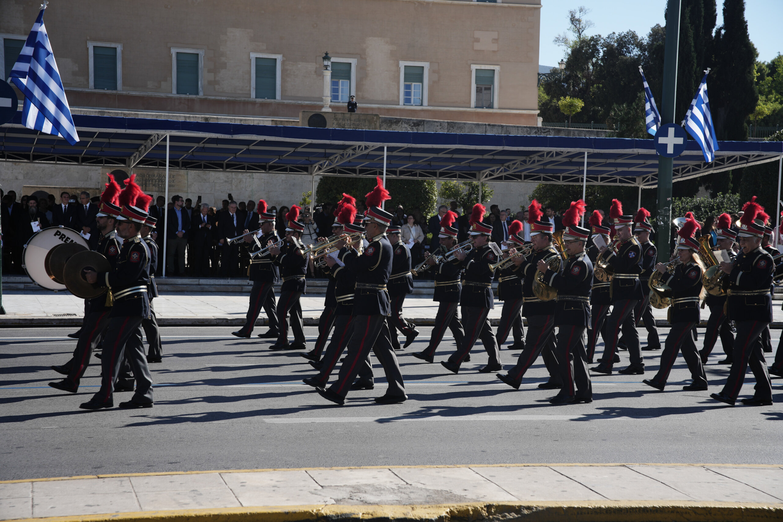 Την παρέλαση πλαισίωσε μουσική από τη Φιλαρμονική του Δήμου Αθηναίων και του Πυροσβεστικού Σώματος, στέλνοντας το μήνυμα ότι το πνεύμα του 1940 παραμένει ζωντανό.