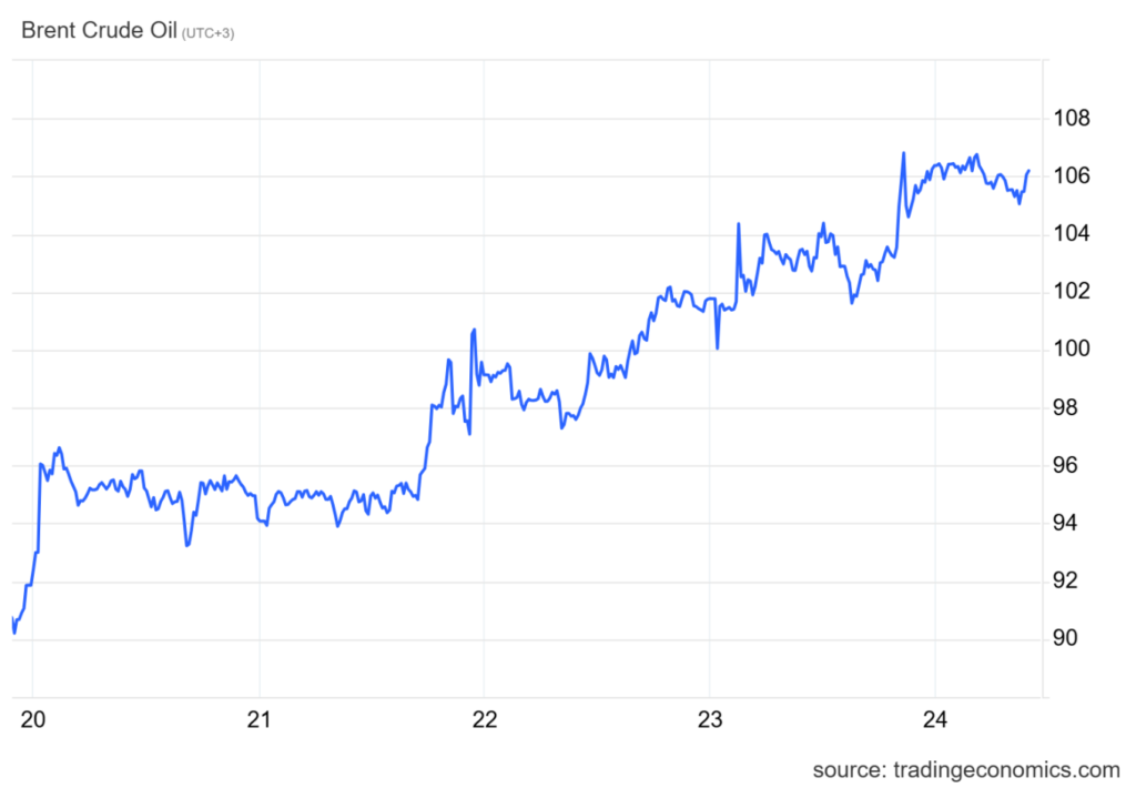 Τα συμβόλαια Brent διατηρήθηκαν πάνω από τα 105 δολάρια το βαρέλι την Παρασκευή, καταγράφοντας πορεία εβδομαδιαίας ανόδου σχεδόν 17%, καθώς η στασιμότητα στις ειρηνευτικές συνομιλίες ΗΠΑ–Ιράν και το συνεχιζόμενο κλείσιμο των Στενών του Ορμούζ τροφοδοτούν τις ανησυχίες για την προσφορά