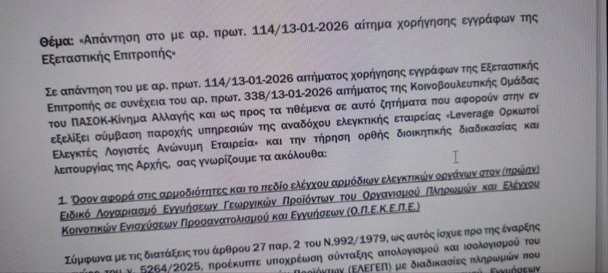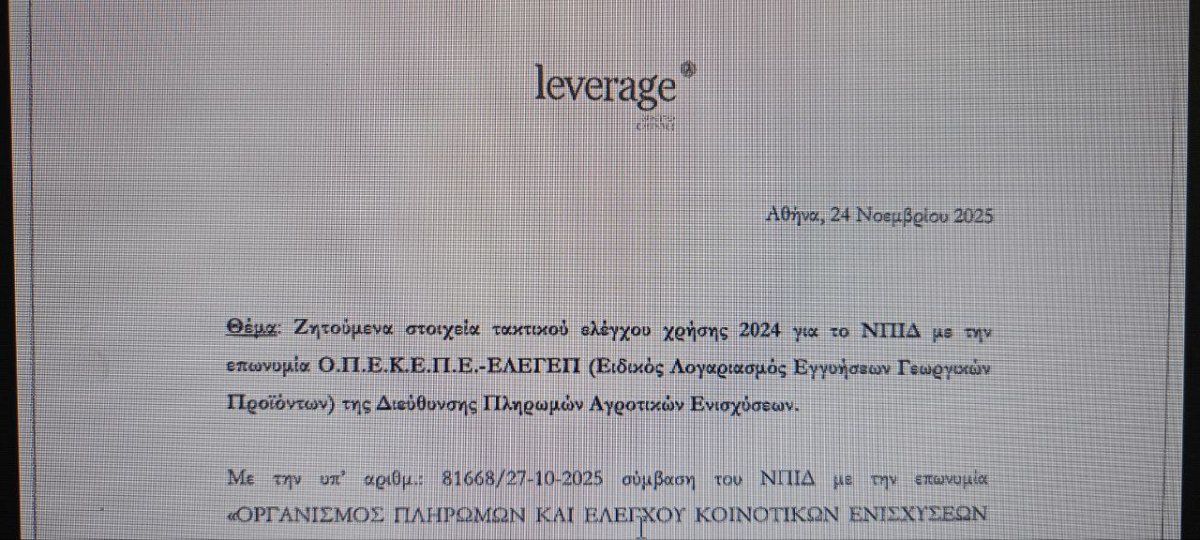 Ωστόσο, στην επιστολή του Νοεμβρίου του 2025 της Leverage προς τη διοίκηση του ΟΠΕΚΕΠΕ, όπου αποδελτιώνονται αυτά που ζητούν οι ορκωτοί λογιστές για να πραγματοποιήσουν τον έλεγχό τους, αναγράφονται ισοζύγια, τραπεζικά στοιχεία, φορολογικές δηλώσεις και μισθοδοσίες, δηλαδή έγγραφα που θεωρούνται απολύτως φυσιολογικά σε κάθε έλεγχο ισολογισμού.