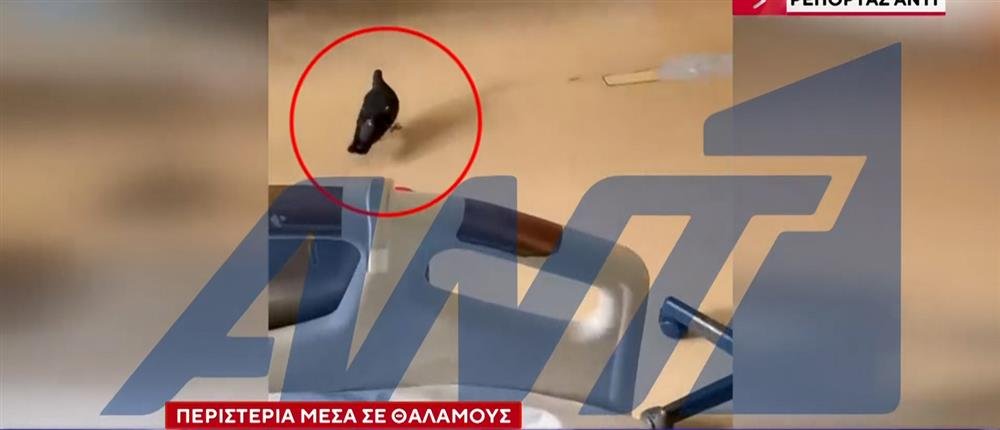 Σε βίντεο που μετέδωσε ο ΑΝΤ1, φαίνεται περιστέρι να περιφέρεται ανενόχλητο μέσα σε θάλαμο, ενώ συνοδοί των ασθενών καταγγέλλουν ότι τα πτηνά κινούνται επίσης στους διαδρόμους και σε εργαστηριακούς χώρους, αναζητώντας πεσμένα ψίχουλα.