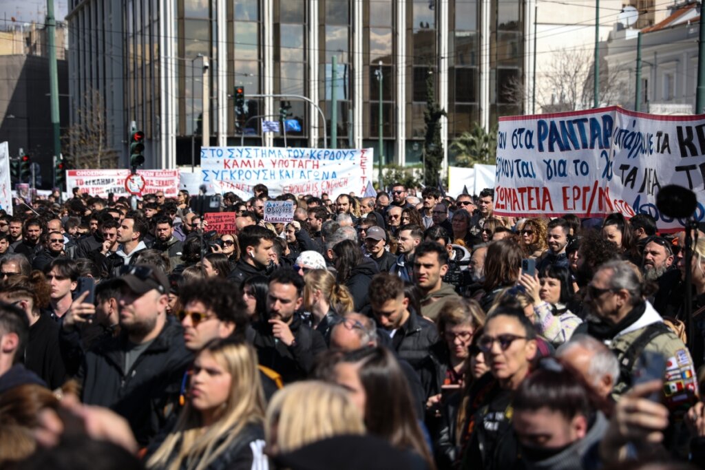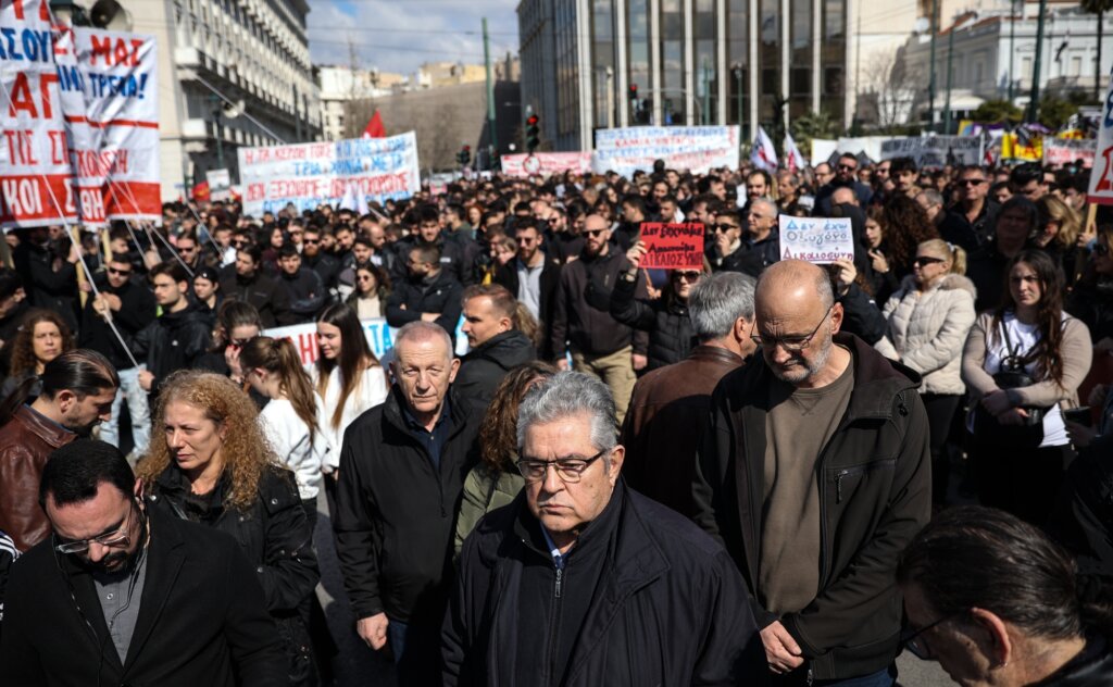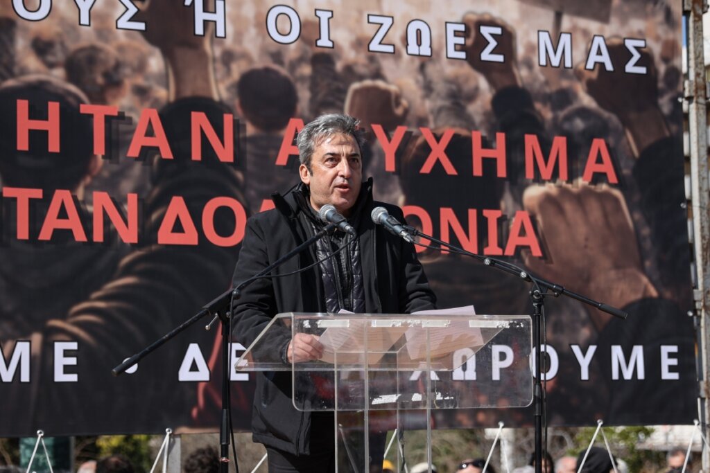 Ο Παύλος Ασλανίδης βρέθηκε στο βήμα της μεγάλης συγκέντρωσης στο Σύνταγμα για την επέτειο των τριών ετών από το πολύνεκρο σιδηροδρομικό δυστύχημα στα Τέμπη.