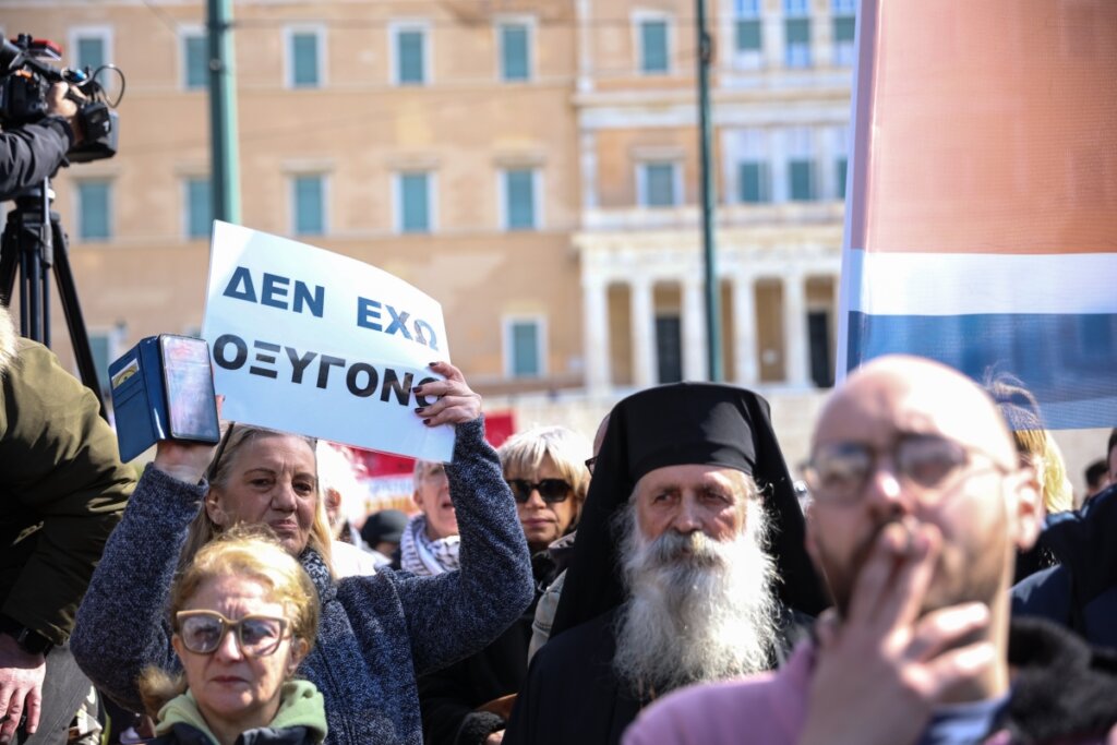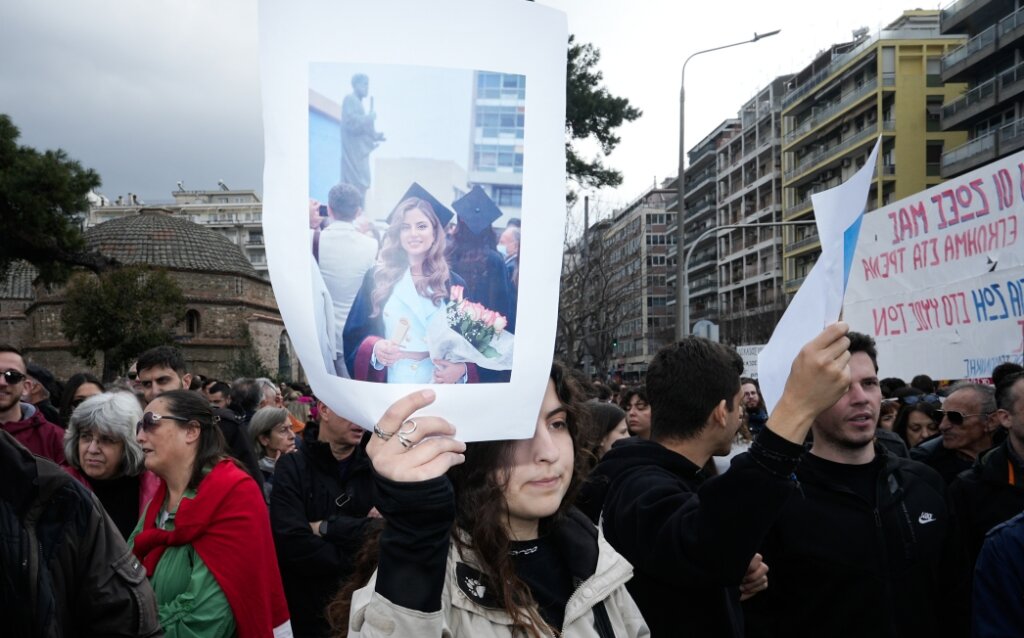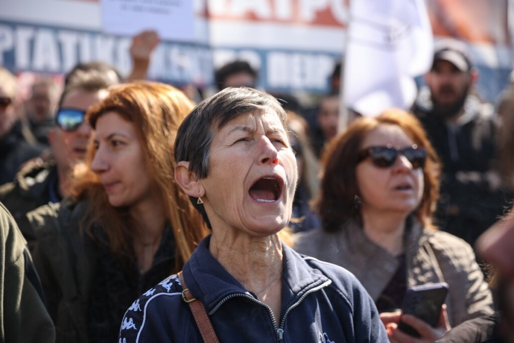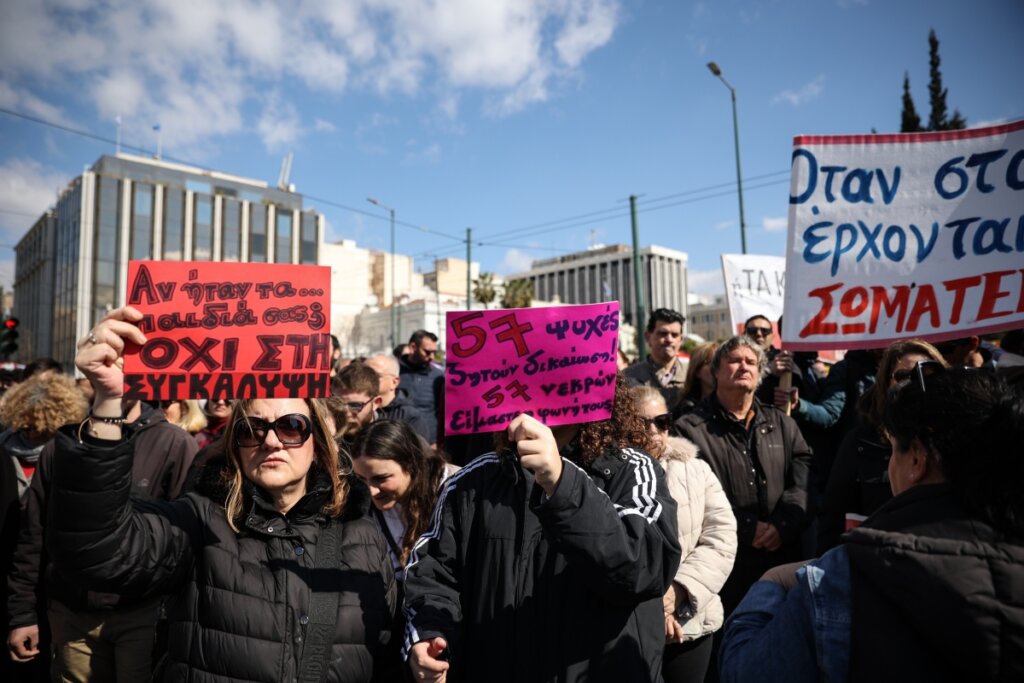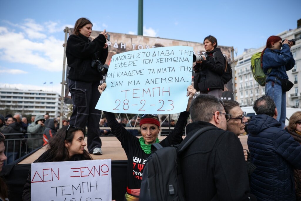 Η Μαρία Καρυστιανού βρέθηκε το Σάββατο 28 Φεβρουαρίου στο συλλαλητήριο που πραγματοποιήθηκε στην Σύνταγμα, με αφορμή τη συμπλήρωση τριών ετών από την τραγωδία στα Τέμπη.