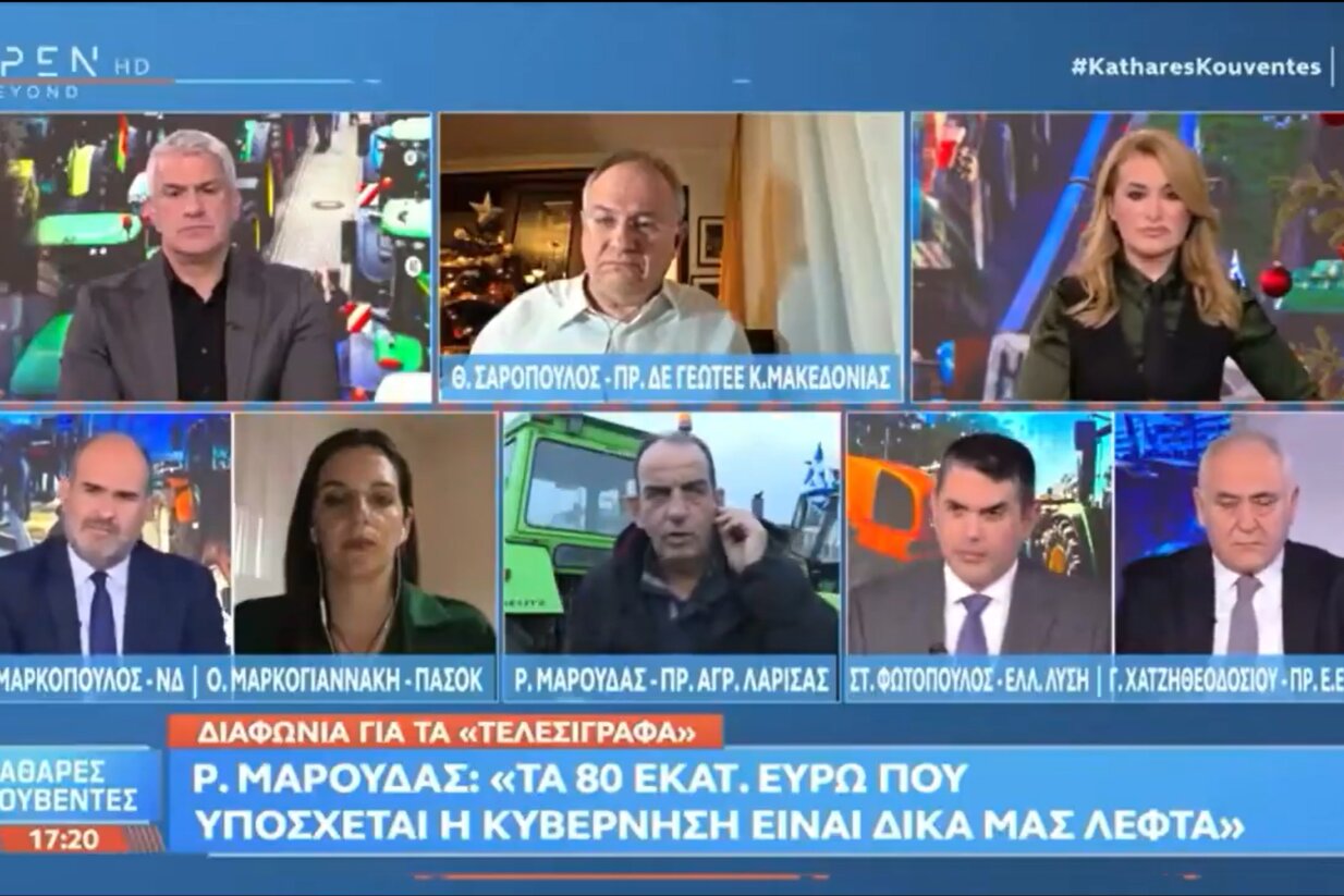 Σκληρή επίθεση έκανε χθες ο Πρόεδρος Αγροτών Λάρισας Ρίζος Μαρούδας προς το Βουλευτή της Νέας Δημοκρατίας Δημήτρη Μαρκόπουλο στον τηλεοπτικό σταθμό Open στην εκπομπή Καθαρές Κουβέντες.