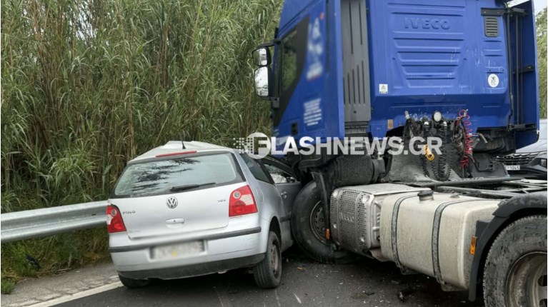 Το τροχαίο σημειώθηκε το απόγευμα της Πέμπτης, όταν ένα αυτοκίνητο συγκρούστηκε, κάτω από άγνωστες μέχρι στιγμής συνθήκες με μία νταλίκα, με αποτέλεσμα και τα δύο οχήματα να χάσουν τον έλεγχο της πορείας τους και να καταλήξουν στο πλάι του δρόμου.