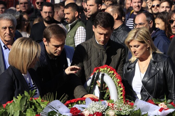 Η Κατερίνα Γεννηματά-Τσούνη, η κόρη της Φώφη Γεννηματά, βρέθηκε στην κεφαλή της πορείας κρατώντας την αιματοβαμμένη σημαία του Πολυτεχνείου.