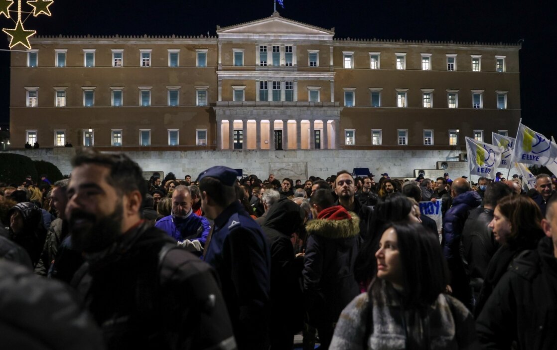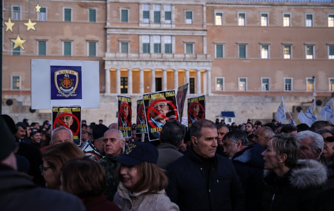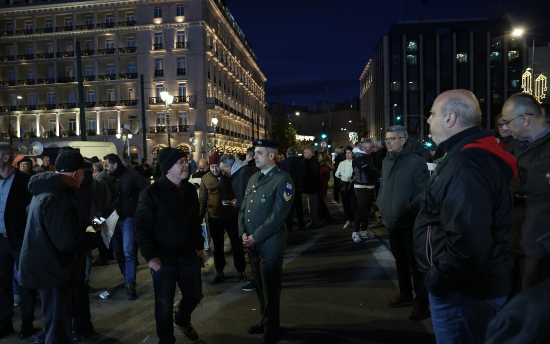 Συγκέντρωση διαμαρτυρίας πραγματοποίησαν χθες οι στρατιωτικοί στο Σύνταγμα κατά τη διάρκεια ψηφοφορίας του νομοσχεδίου του Υπουργείου Εθνικής Άμυνας.