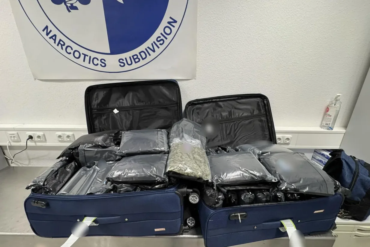 Από τον έλεγχο που πραγματοποιήθηκε στις αποσκευές τους, συνολικά κατελήφθησαν να έχουν αποκρύψει σε νάιλον συσκευασίες εντός των αποσκευών τους, -72- κιλά και -700- γραμμάρια ακατέργαστης κάνναβης υδροπονικής καλλιέργειας (skunk).