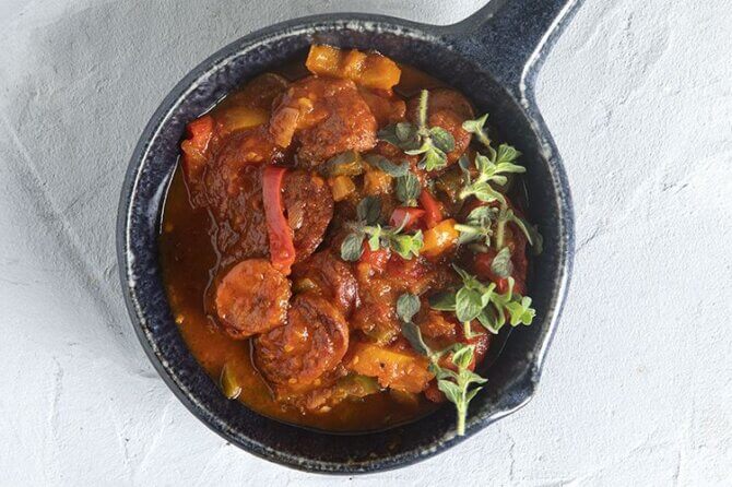 - Βάζουμε ένα τηγάνι με μεταλλική λαβή ή ένα πυρίμαχο σκεύος διαμέτρου 24-26 εκ. στον φούρνο.